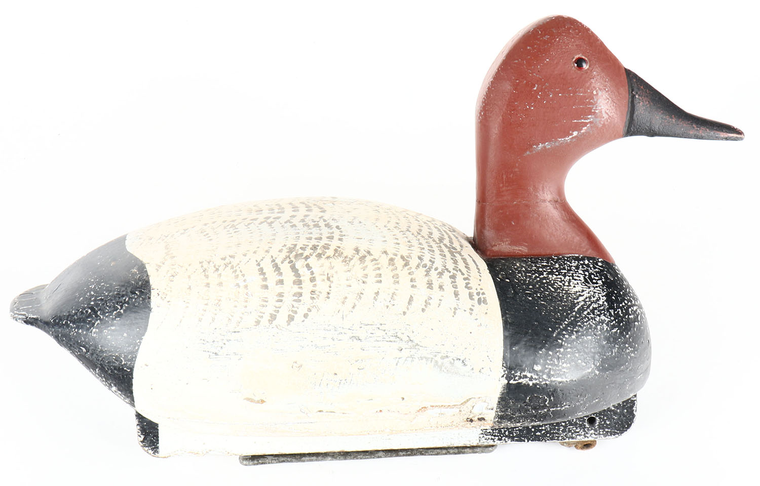 Canvasback Drake by unknown maker, GE, hollow wood with bottom board, old repaint, structurally excellent, 16'' OAL. Grade: Excellent - Value: 40 to 80