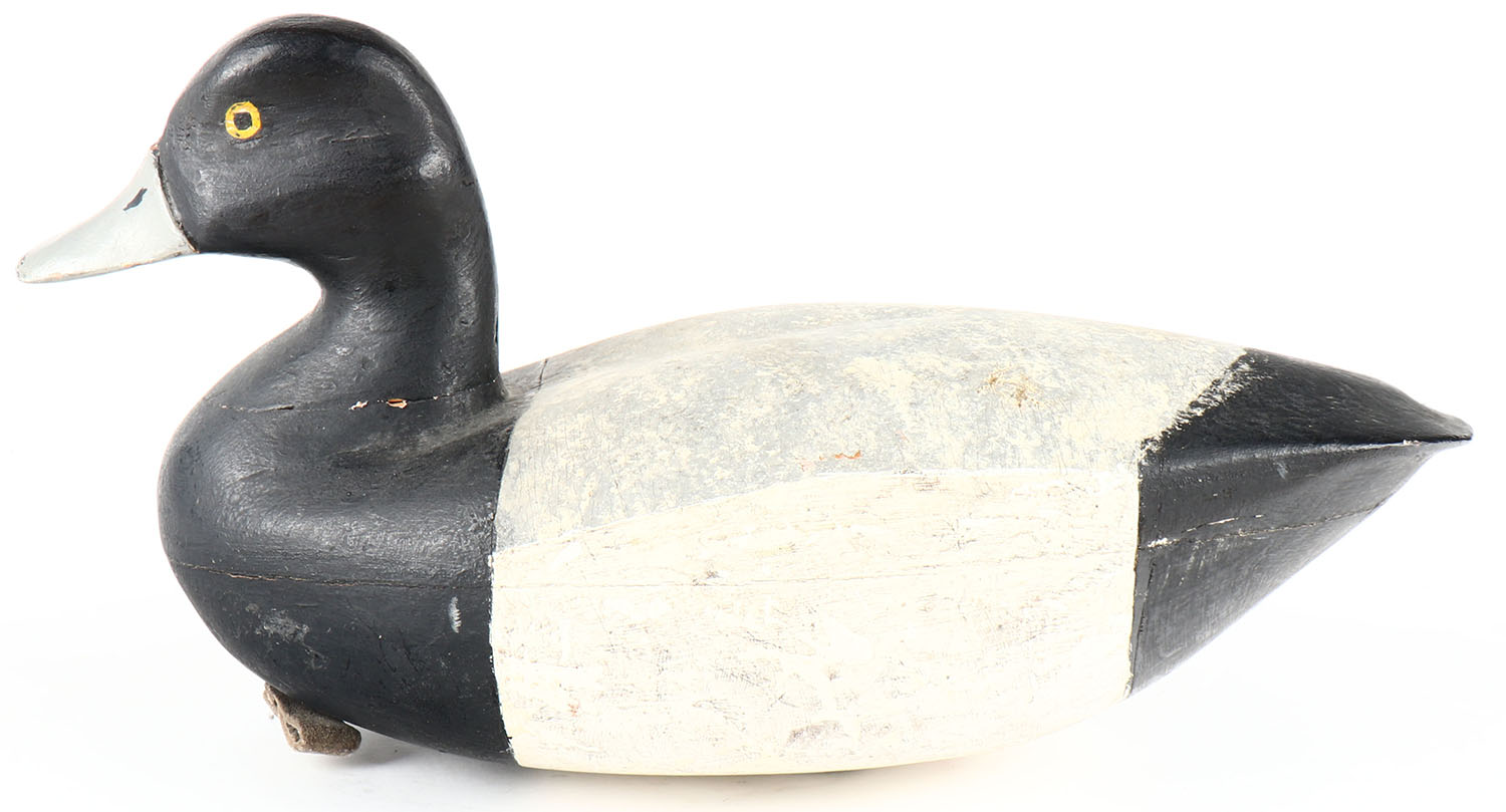 Bluebill Drake by unknown NJ maker, GE, hollow wood, original paint, structurally excellent, 14'' OAL. Grade: Excellent - Value: 20 to 40