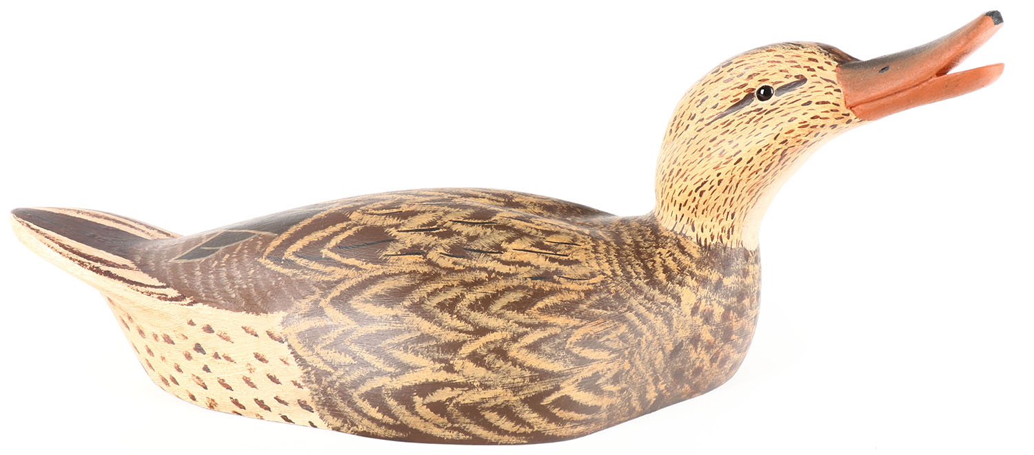 Mallard Hen by Mike Smyser Decoys, GE, hollow wood, original paint, structually excellent, 18 1/2'' OAL. Grade: MINT - Value: 40 to 100