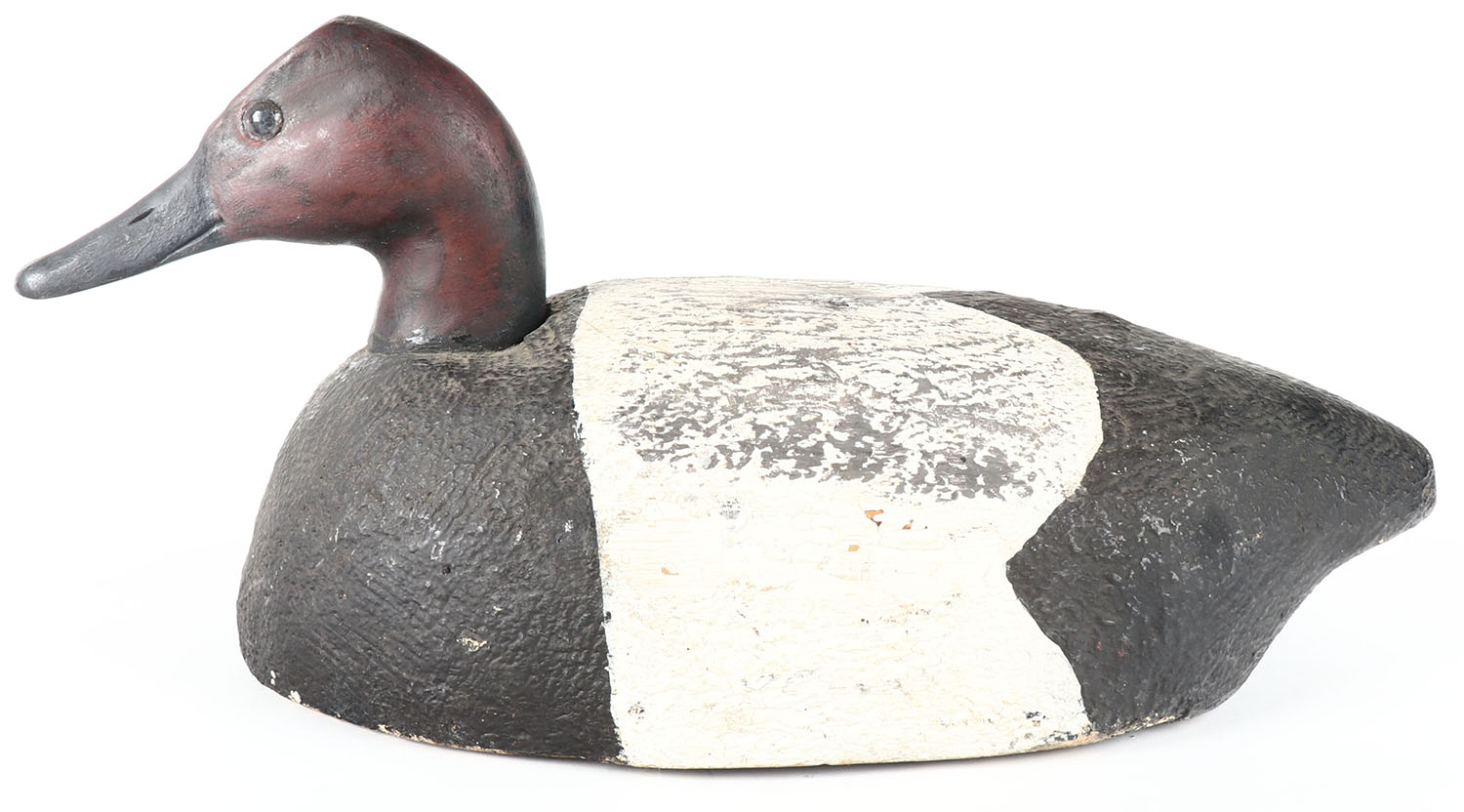 Canvasback Drake by unknown maker, GE, solid wood, original paint, structurally excellent, 17'' OAL. Grade: Excellent - Value: 30 to 60