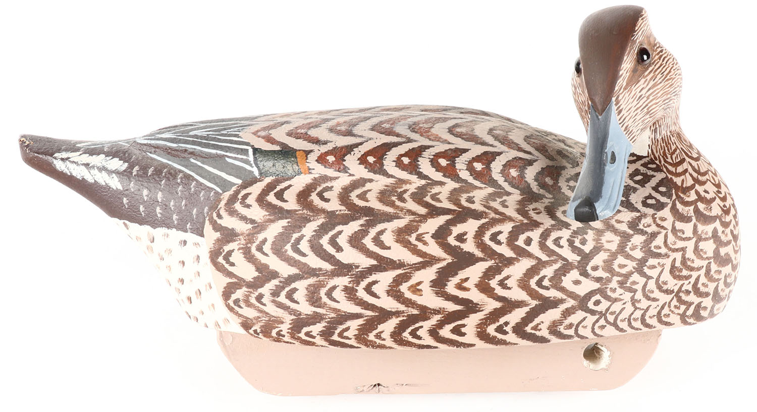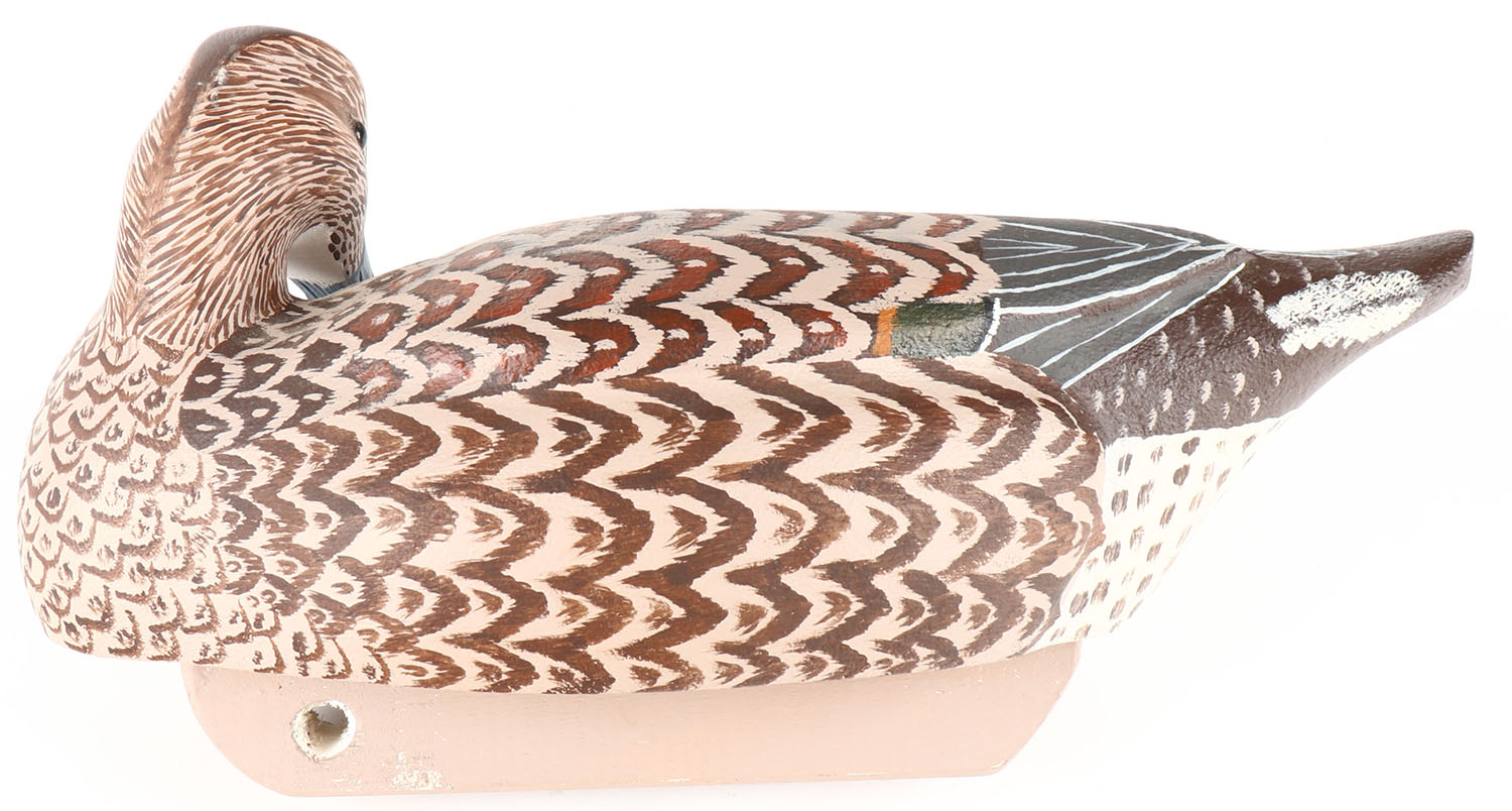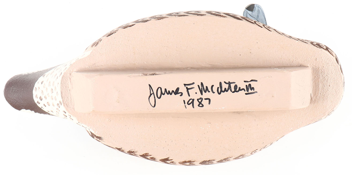 Preening Pintail Hen by James F. McChritee III ?, GE, solid cork, original paint, structurally excellent, signed on bottom, 14'' OAL. Grade: Excellent - Value: 20 to 40
