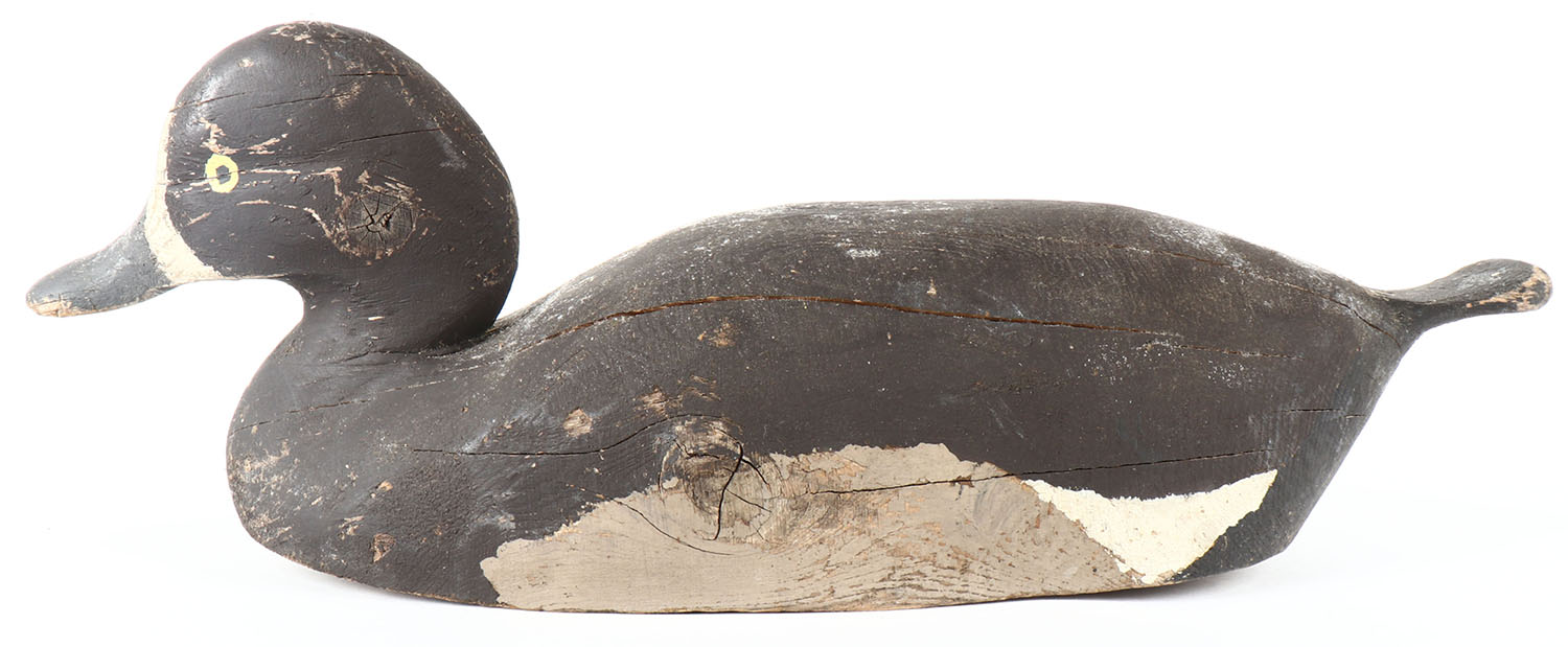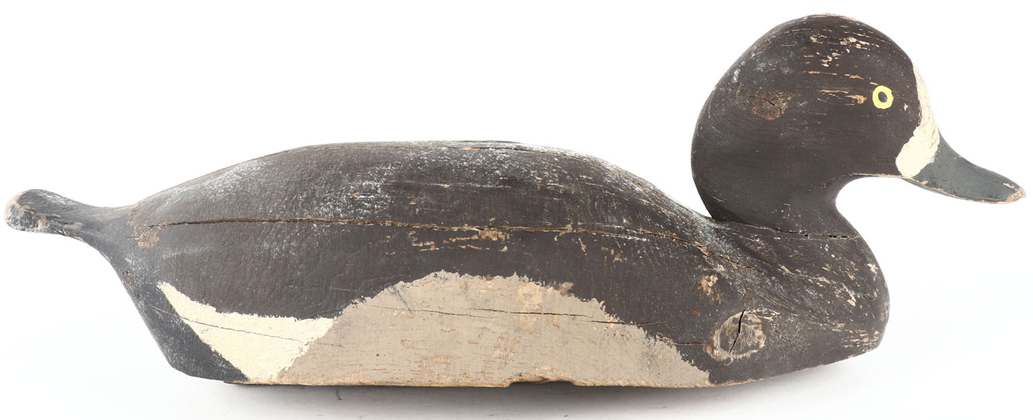 Bluebill Hen by unknown maker, PE, solid wood, original paint, 13 1/2'' OAL. Grade: Very Good - Value: 20 to 60