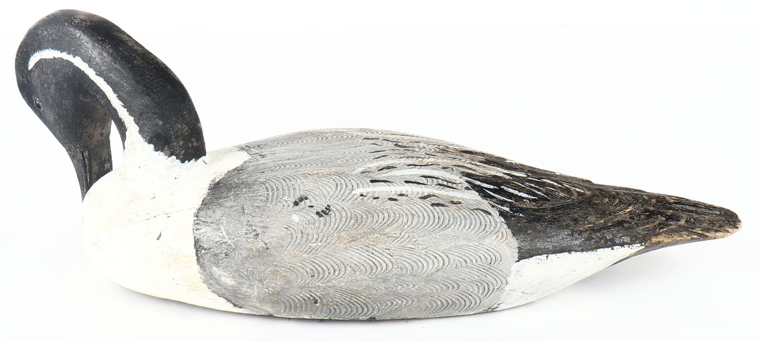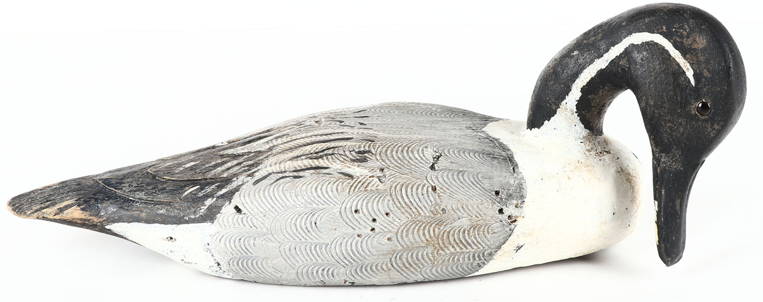 Preening Pintail Drake by unknown maker, GE, solid wood, original paint with feather detail, structurally excellent. Grade: Excellent - Value: 10 to 150