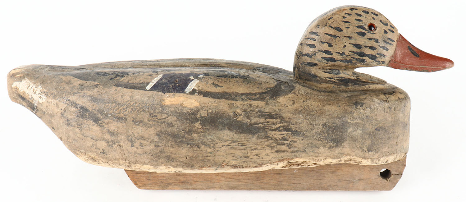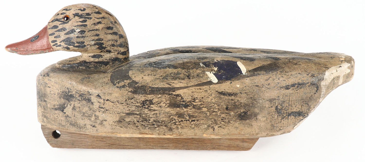 Mallard Hen by unknown maker, glass eyes, balsa wood, original paint, structurally excellent, 15'' OAL. Grade: Excellent - Value: 20 to 60