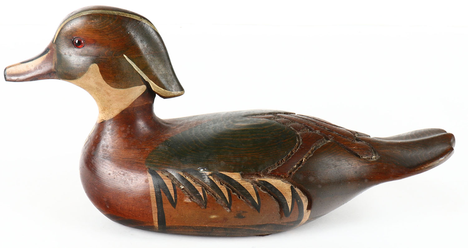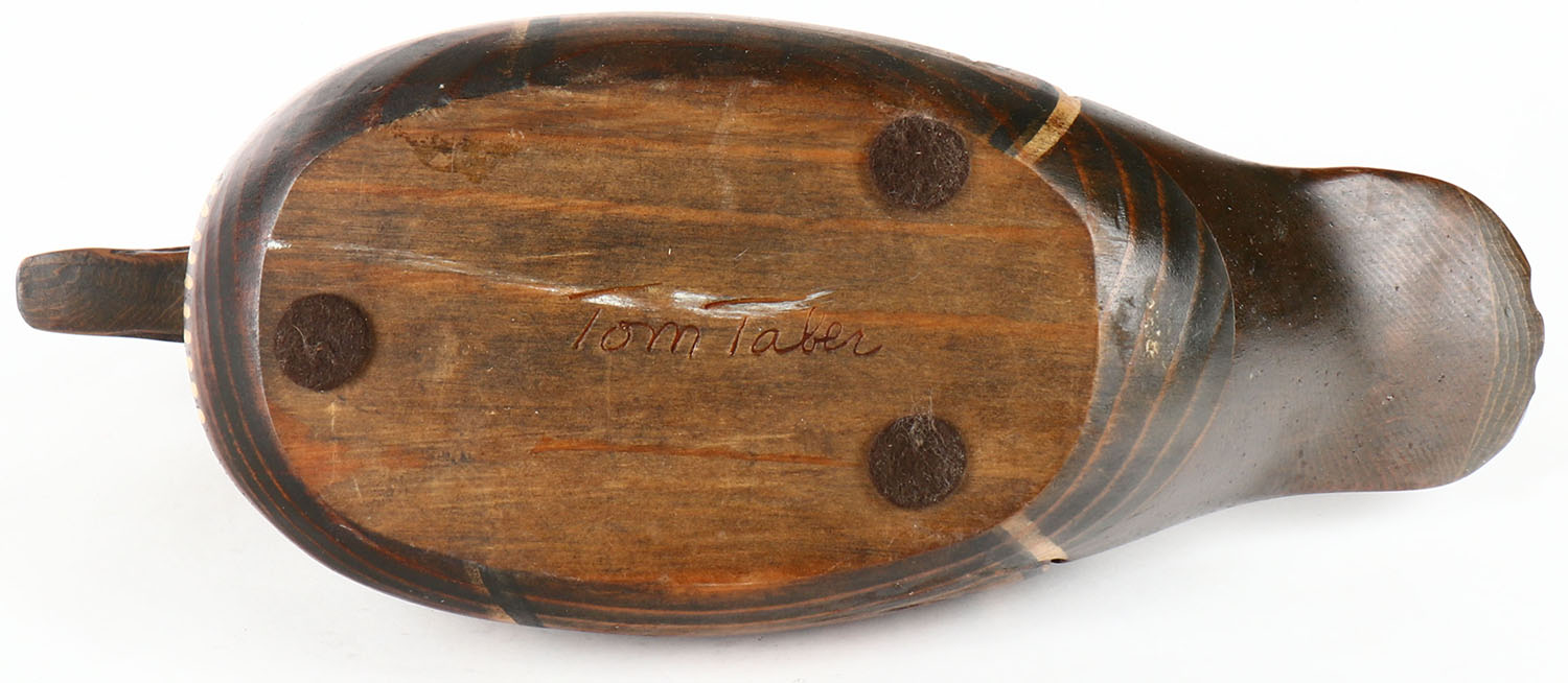 Woodduck Drake by Tom Taber, GE, solid wood, original paint, 14'' OAL. Grade: Excellent ++ - Value: 20 to 60