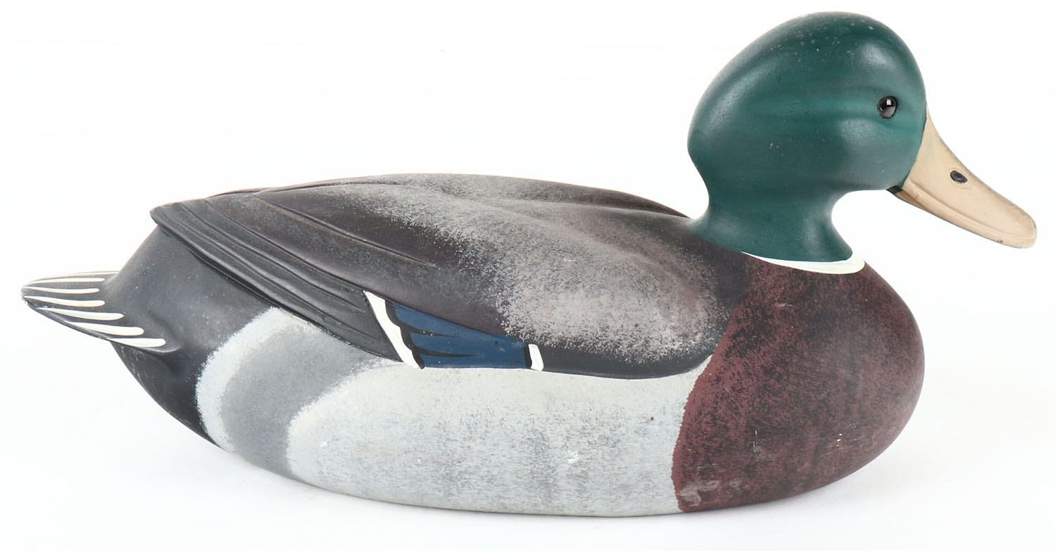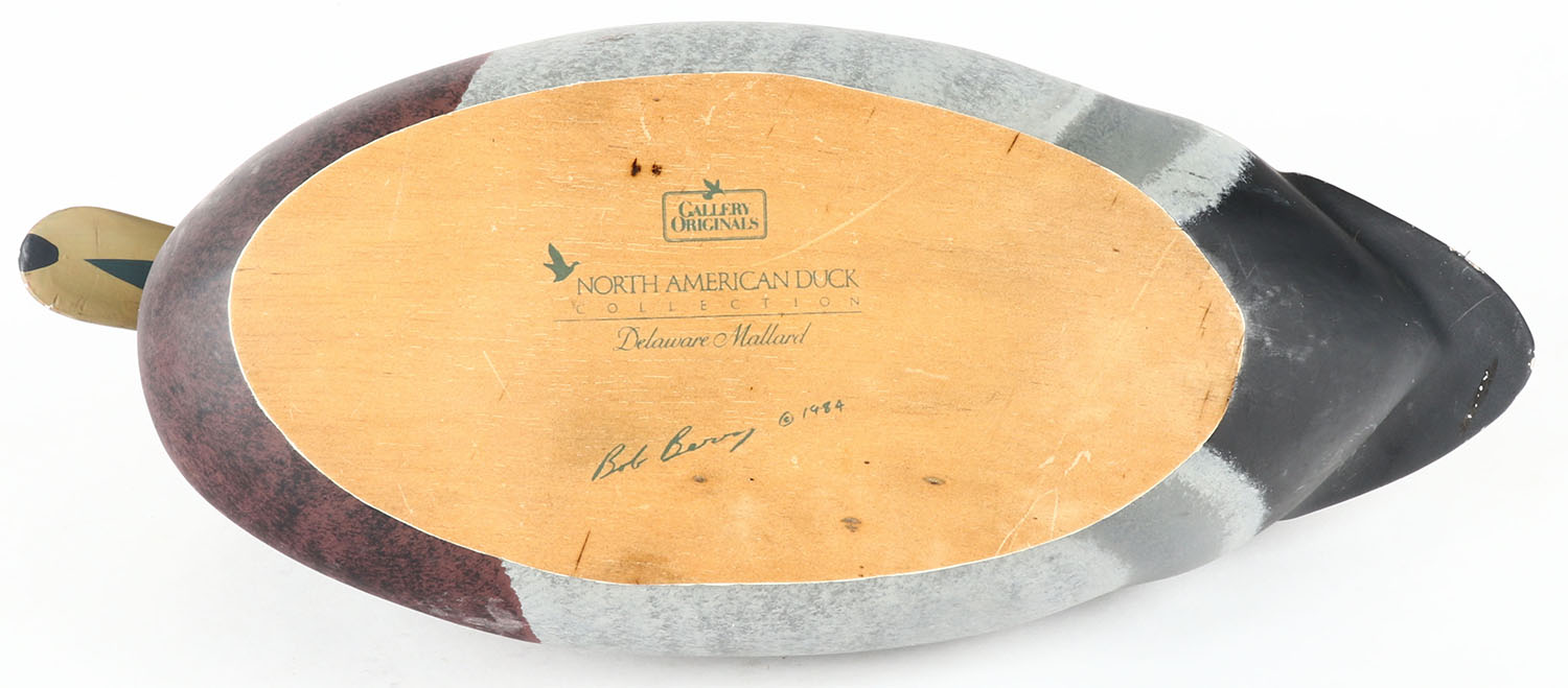 Mallard Drake by BOB BERRY North American Duck Collection, Chesapeake Bay, Bob Berry, glass eyes, solid wood, original paint, signed and branded on bottom by NORTH AMERICAN DUCK COLLECTION BOB BERRY. Grade: Excellent ++ - Value: 20 to 40