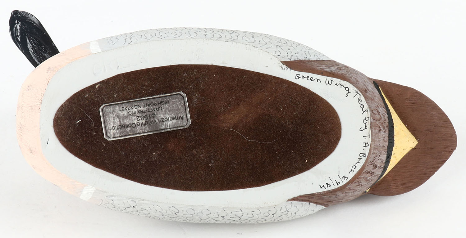 Greenwing Teal Drake by T. A. Brice, GE, hollow wood, original paint, 9'' OAL. Grade: Excellent ++ - Value: 20 to 60