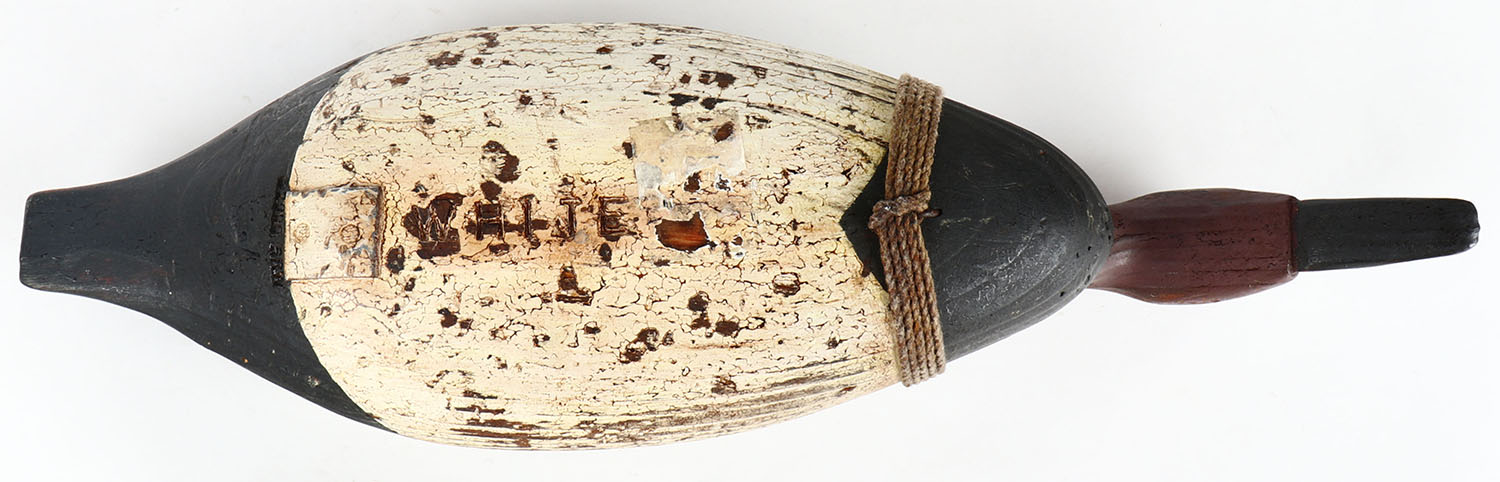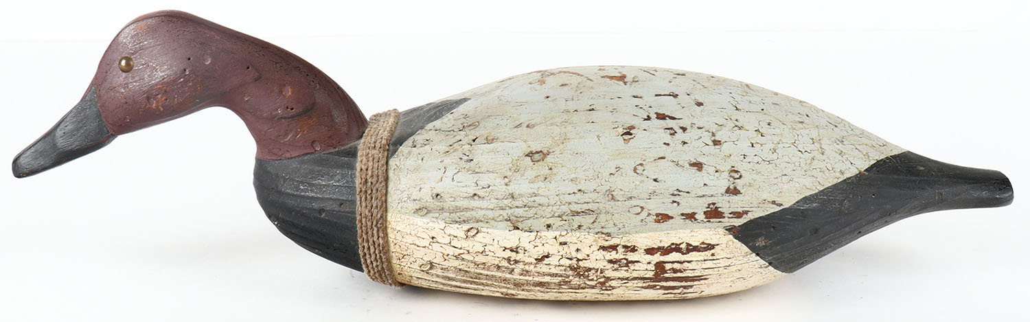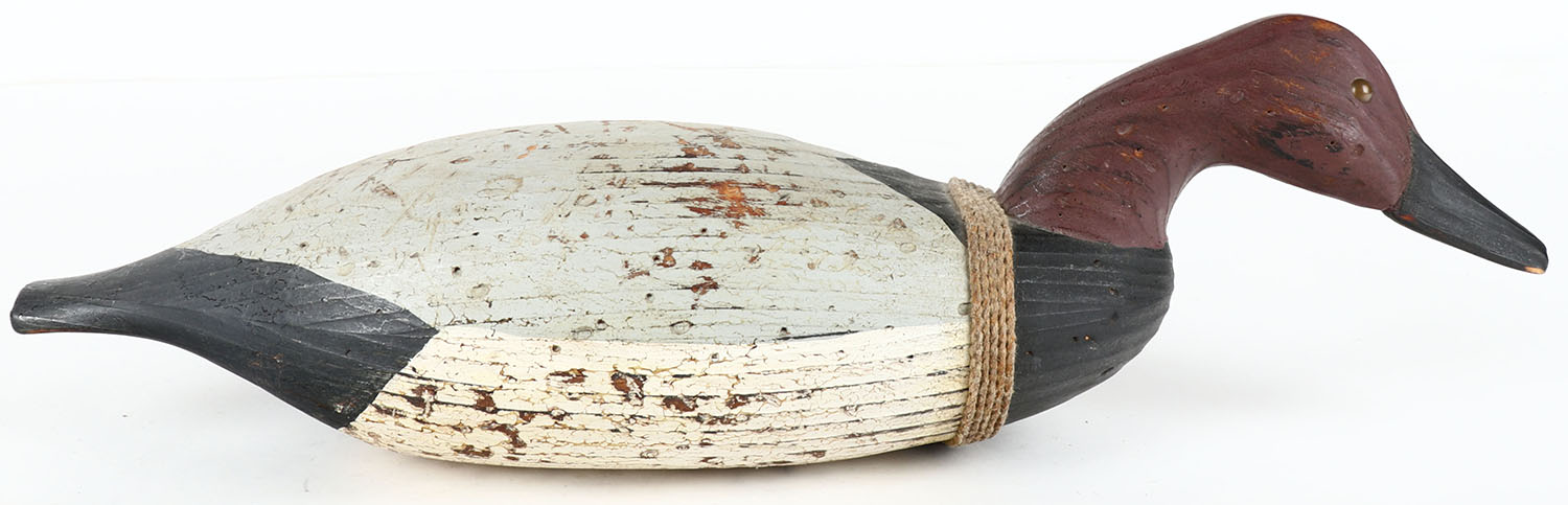 Canvasback Drake by White, TE, solid wood, original paint, 16'' OAL. Grade: Very Good ++ - Value: 10 to 50
