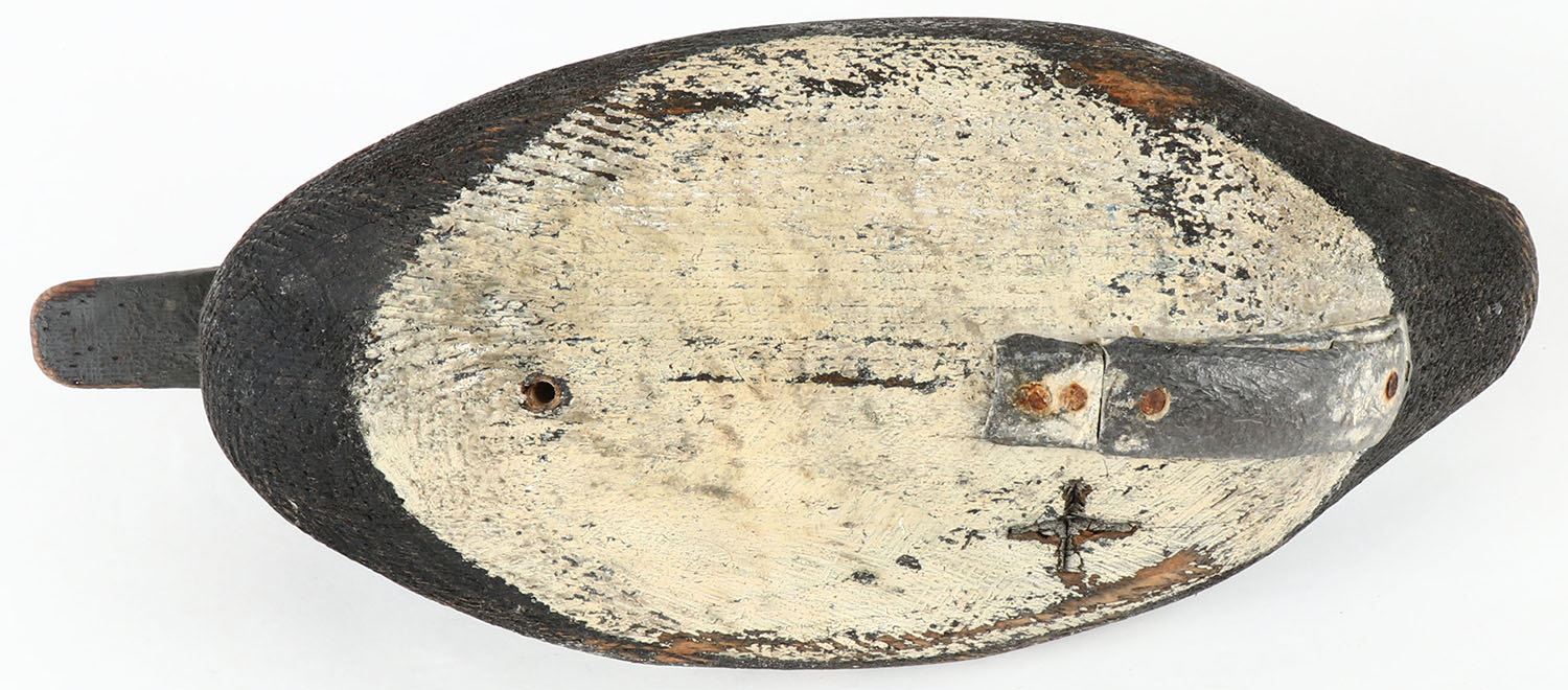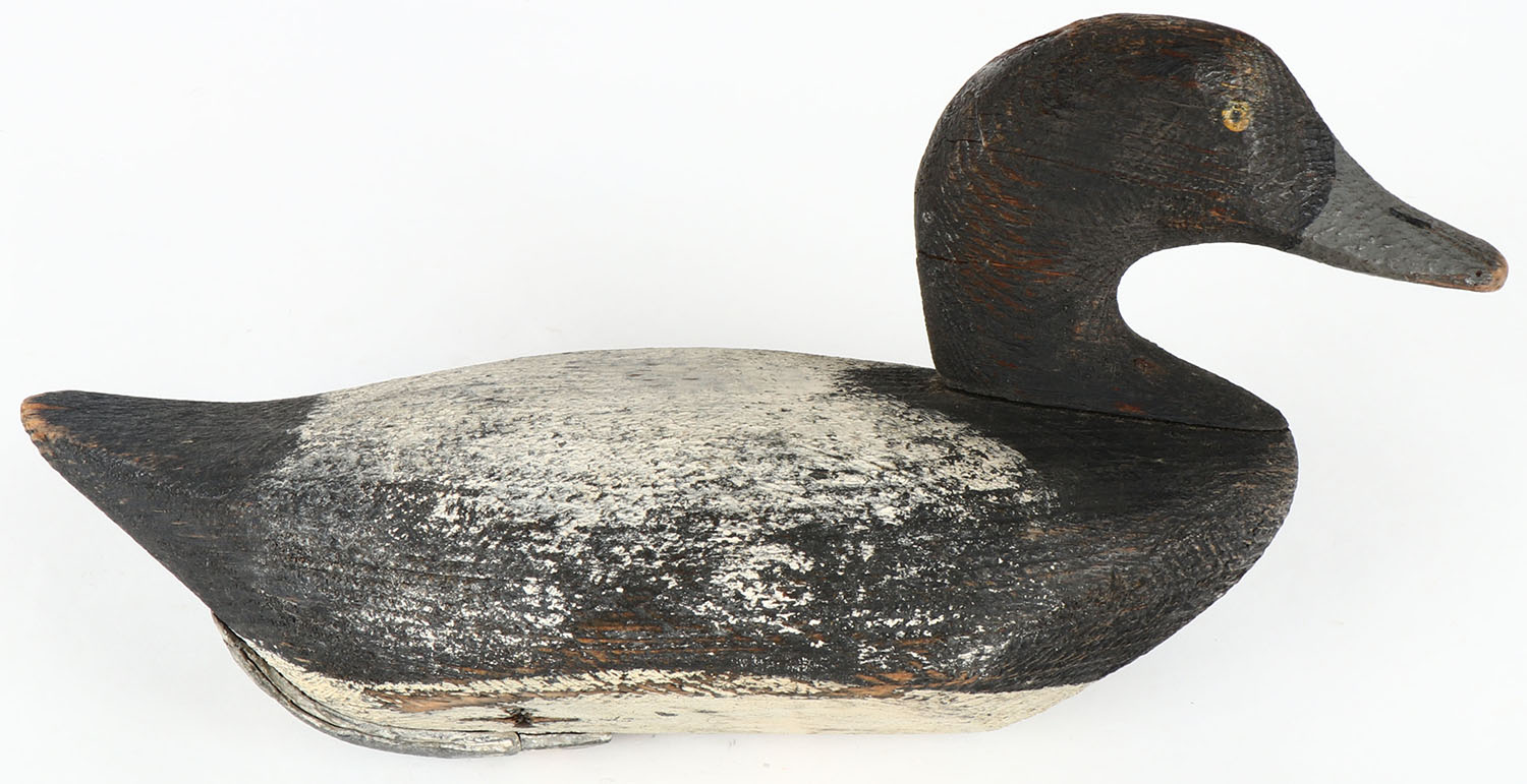 Bluebill Drake by unknown maker, PE, solid wood, original paint, hiar line crake in neck, 13'' OAL. Grade: Very Good - Value: 10 to 60