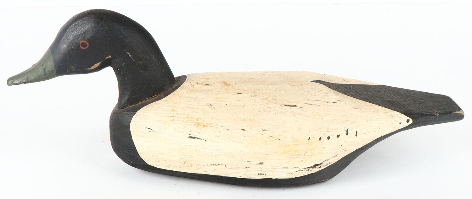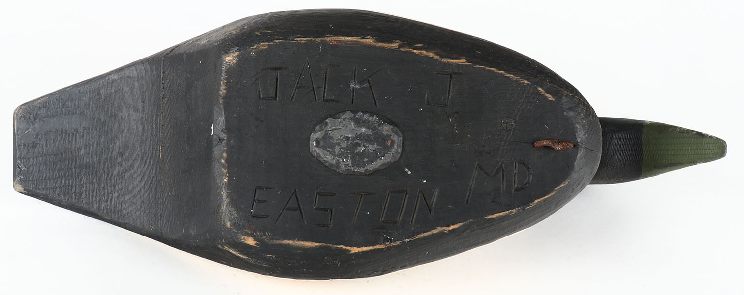 Bluebill Drake by Jack J. Easton MD, PE, solid wood, original paint, signed on bottom, 15'' OAL. Grade: Excellent - Value: 30 to 60