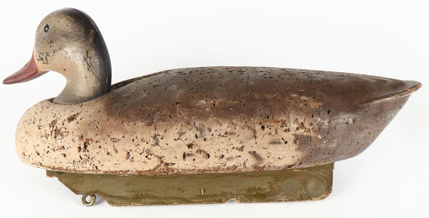 Mallard Hen by unknown maker, PE, cork body, original paint, 18 1/2'', OAL. Grade: Very Good ++ - Value: 10 to 50