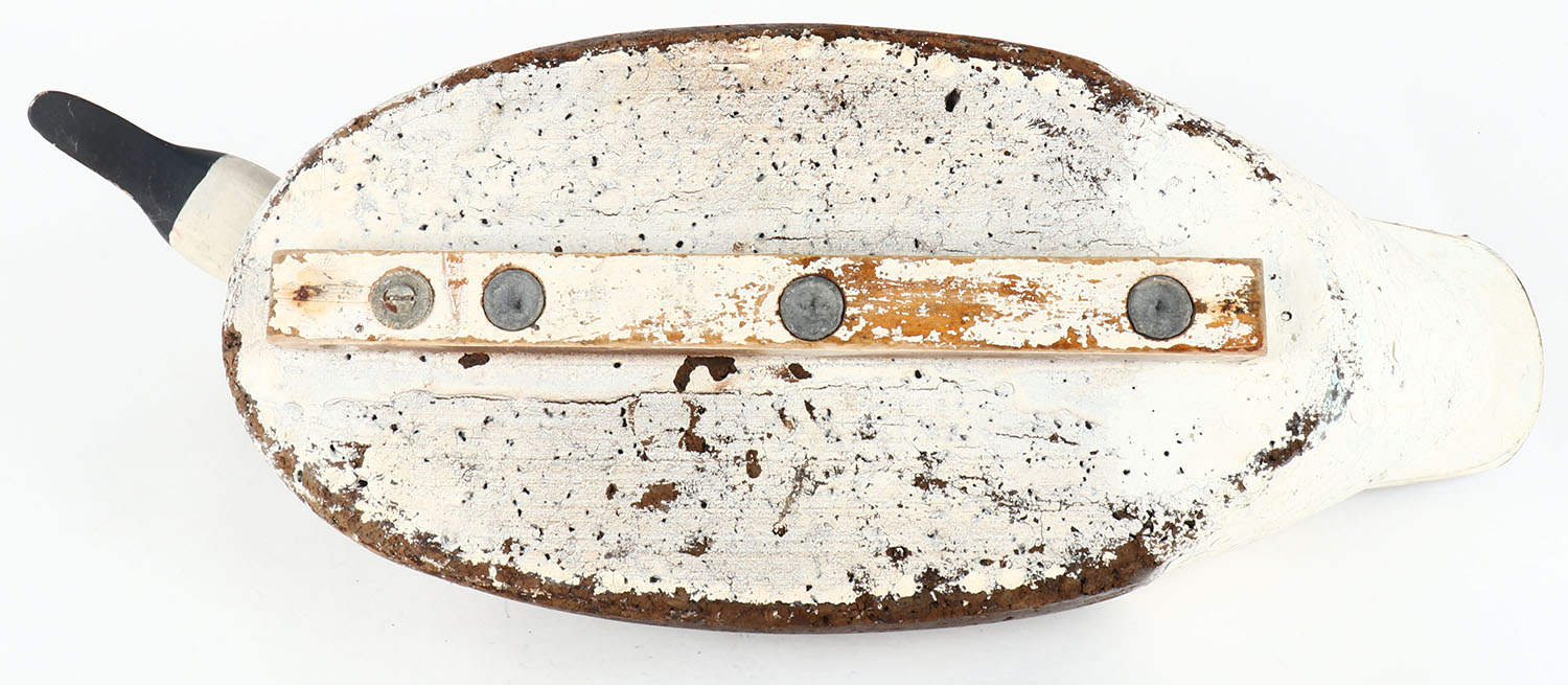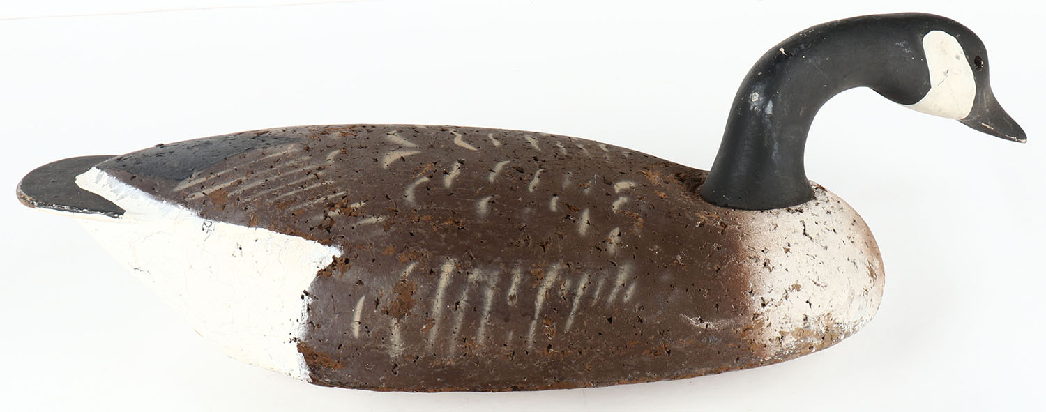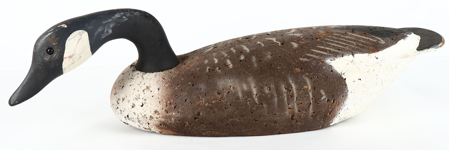 Canada Goose by LL Bean, unmarked on keel, glass eyes, solid cork body, wood head, original paint, structurally excellent, 25'' OAL. Grade: Excellent - Value: 10 to 50
