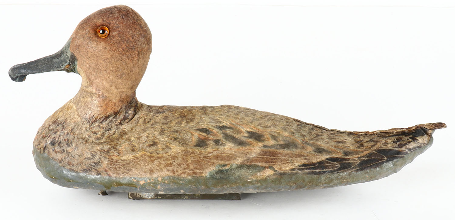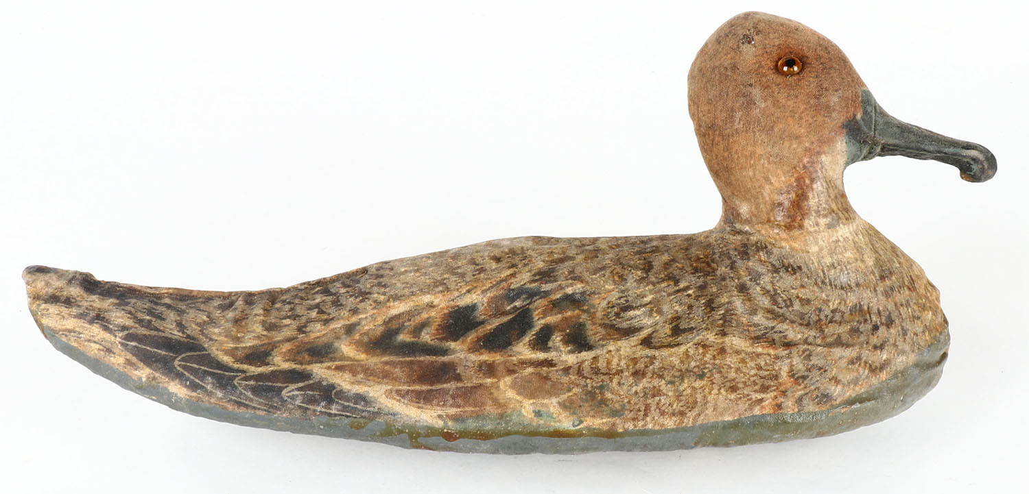 Pintail Hen by Oliveros Decoy Co., Houston, TX, glass eyes, canvas over cork, near mint original paint, structurally excellent. Grade: Excellent + - Value: 20 to 40