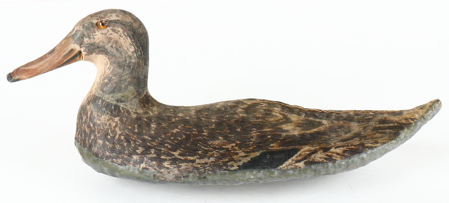 Mallard Hen by Oliveros Decoy Co., Houston, TX, glass eyes, canvas over cork, near mint original paint, structurally excellent. Grade: Excellent ++ - Value: 20 to 40