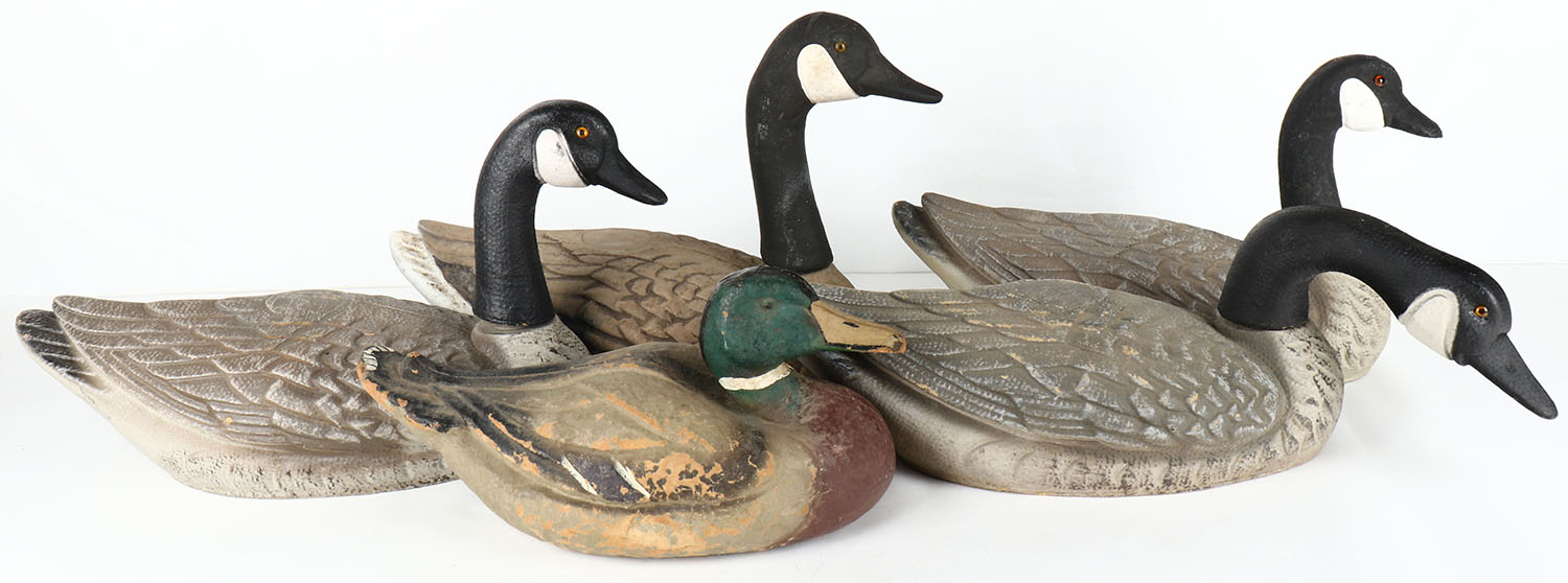 Lot of 5 Paper mache' goose & duck decoys. Grade: Very Good ++ - Value: 6 to 30