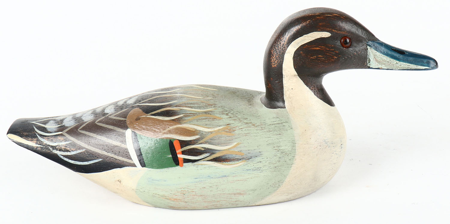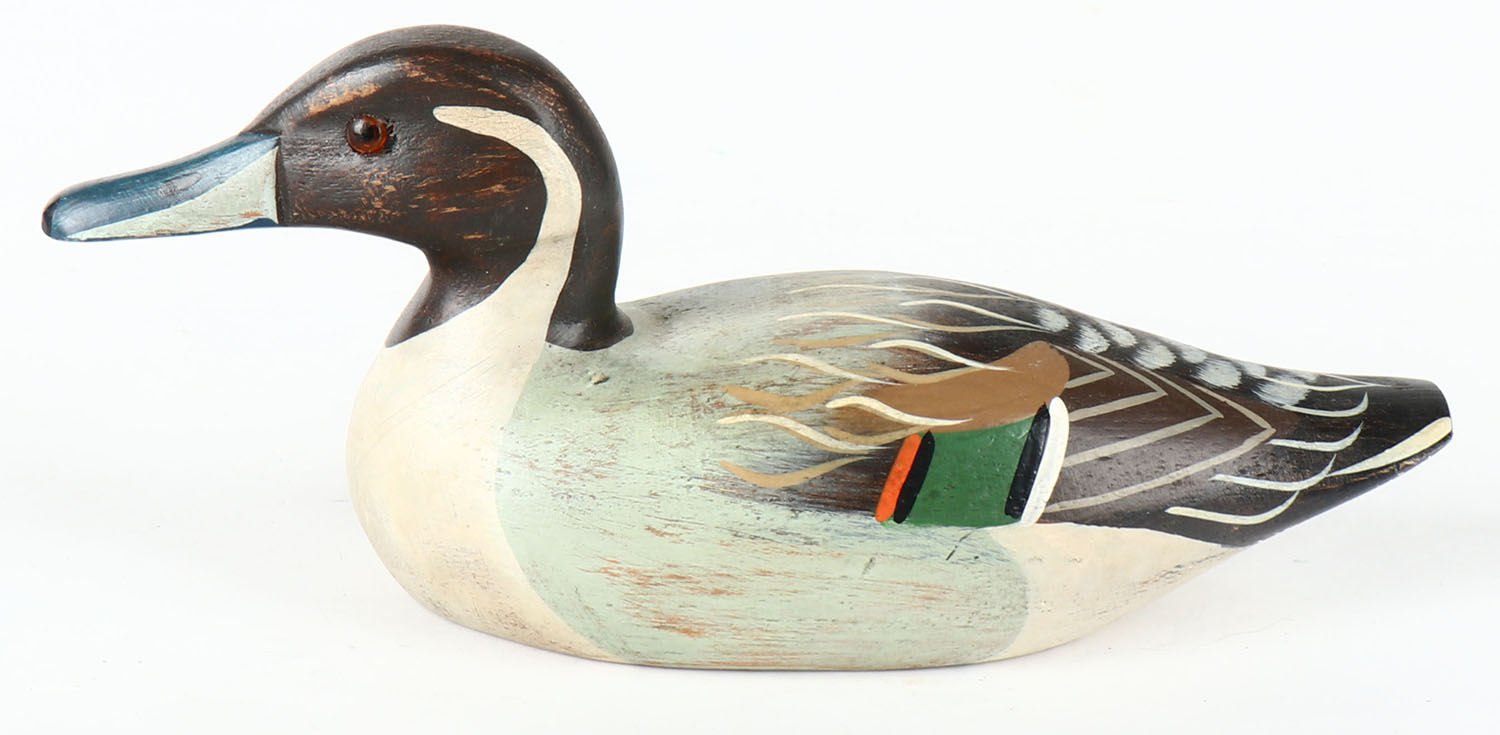 Miniature Pintail Drake by unknown maker, GE, solid wood, mint original paint, 8'' OAL. Grade: Excellent ++ - Value: 10 to 50