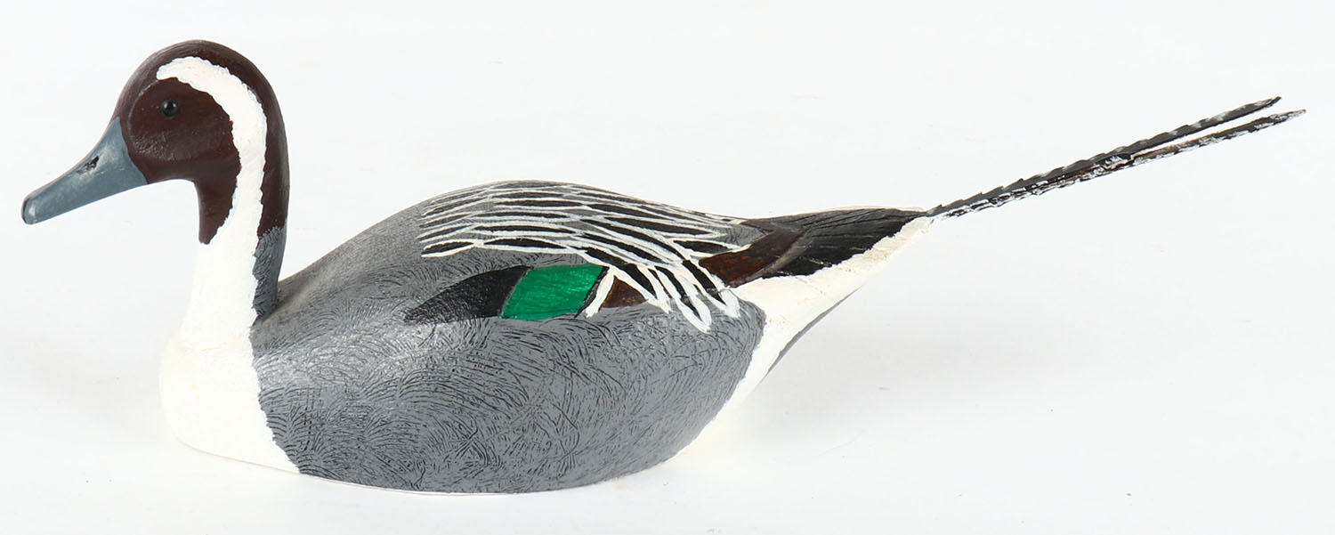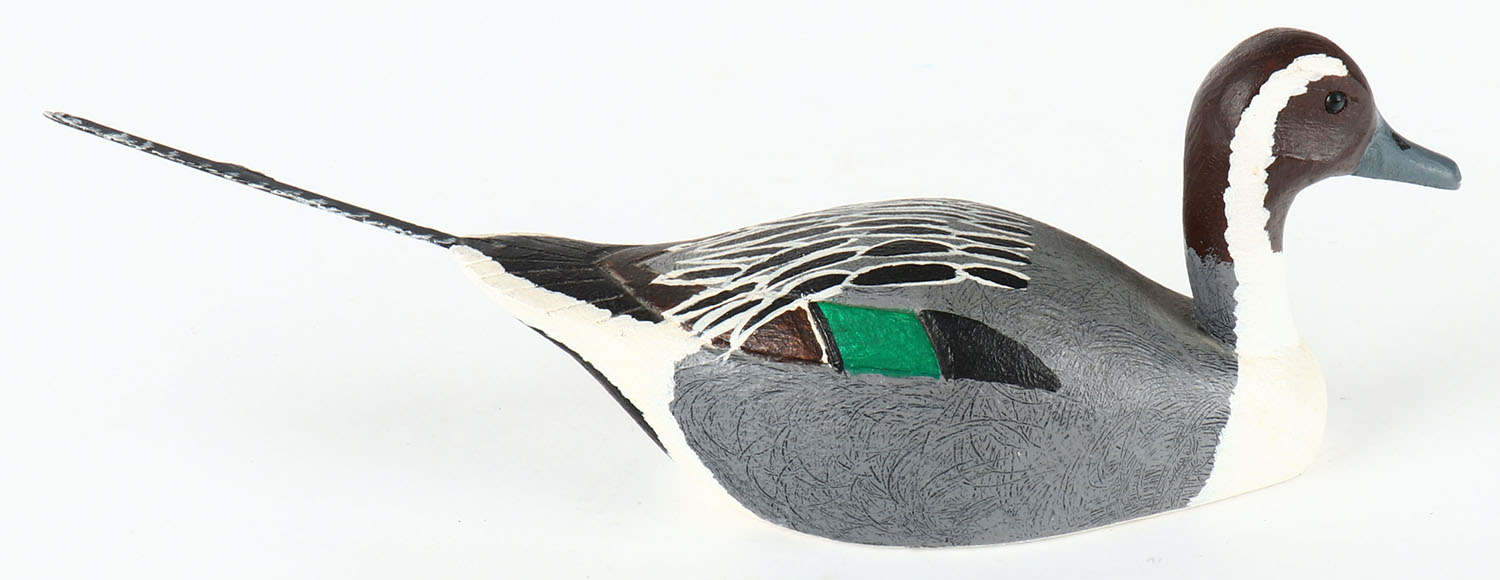 Miniature Pintail Drake by Gary W. Dorsey, NC, GE, solid wood, mint original paint, signed on bottom, 10 1/2'' OAL. Grade: Excellent ++ - Value: 10 to 60