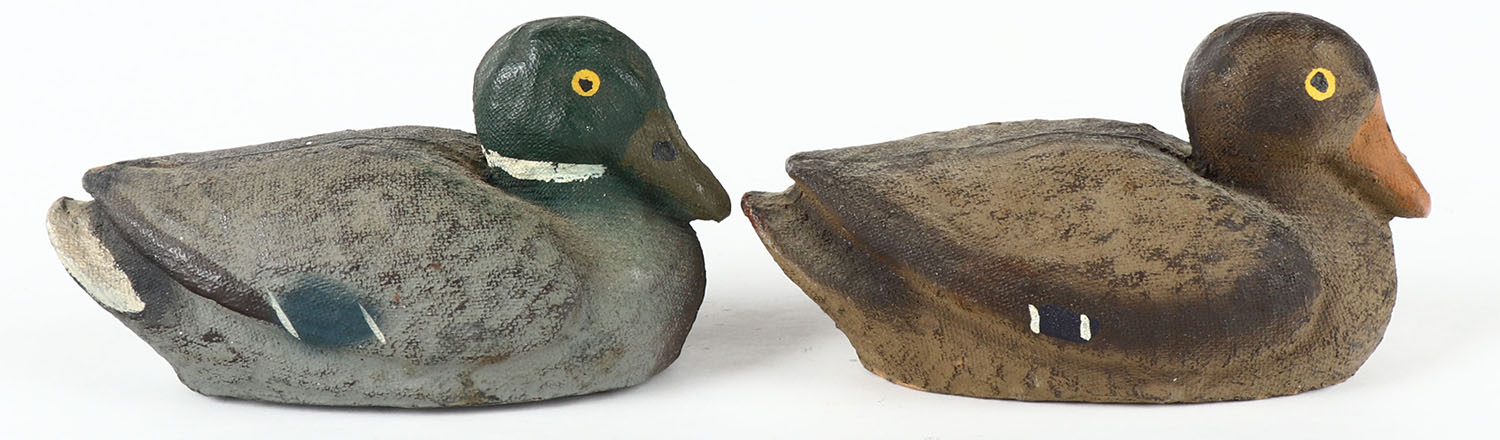 Lot of 2 Salesman Sample Mallard decoys by Carry-Lite, PE, paper mache', all original paint, 5'' OAL. Grade: Excellent - Value: 20 to 60