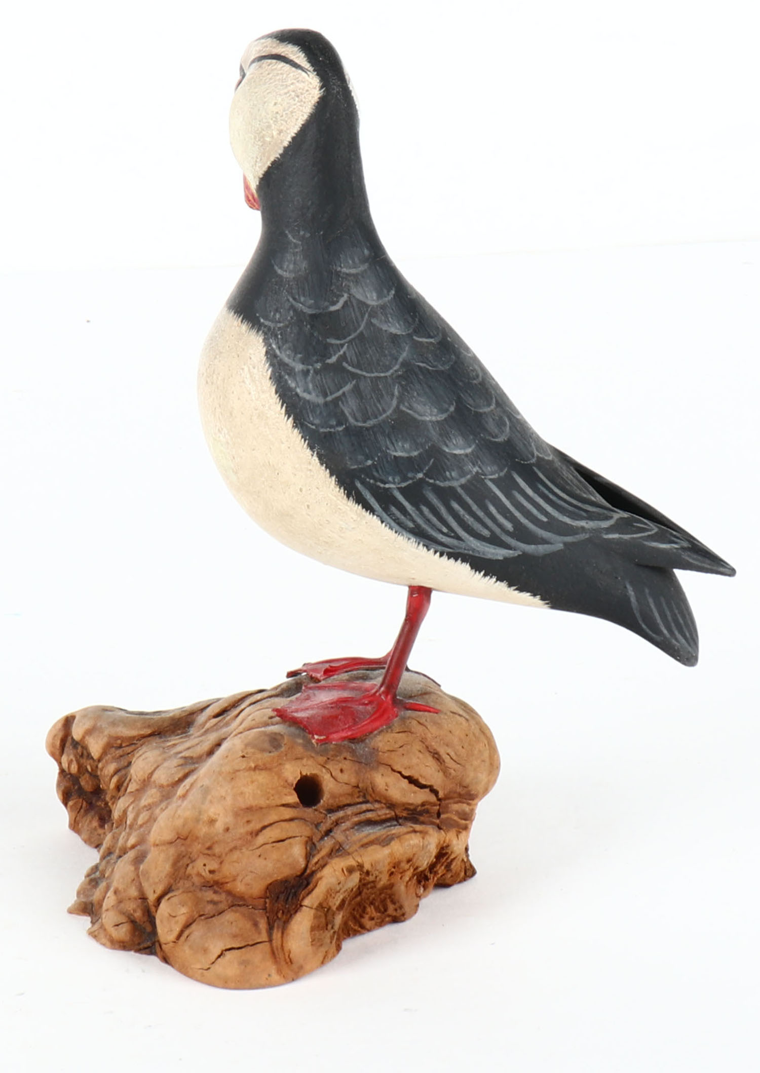 Puffin by John & Patty Waterfield, GE, solid wood, mint original paint on stand, 6'' tall. Grade: MINT - Value: 10 to 50