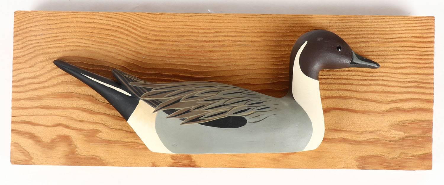 Pintial Drake mounted on board by AM, GE, solid wood, mint original paint, 12'' long. Grade: Excellent ++ - Value: 20 to 60