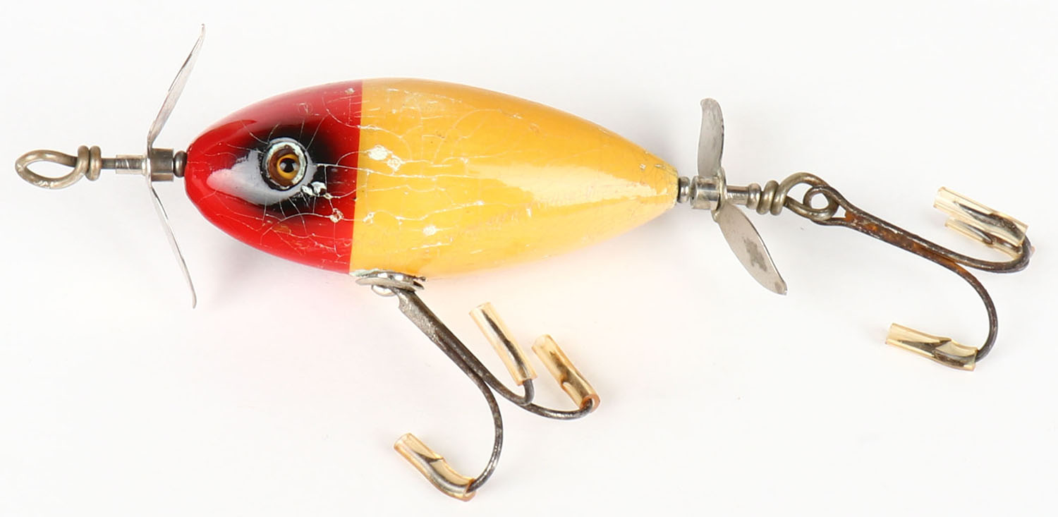 | South Bend SURF ORENO, GE, red & white, 2 hooks, unmarked, ligh...