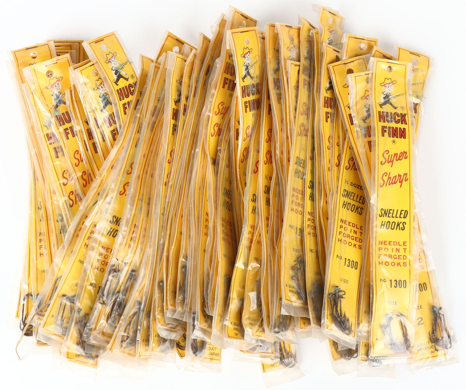 Large Lot of Huck Finn fishing hooks with leader on cards. Grade: Excellent - Value: 10 to 30