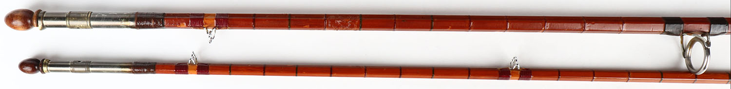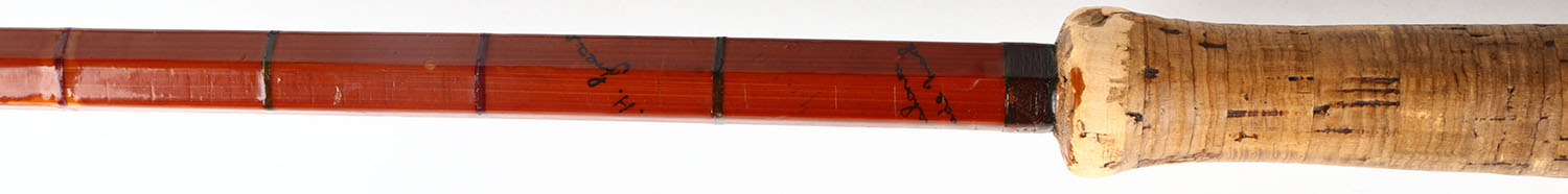 Rare Hardy Palakona, Bamboo Fly Rod, SN: E76245, 13', 10wt?, 3/2, rod is very nice with wonderful wraps, cork is very nice with some use, has wood caps in ferrules, has Hardy marked metal wrench in small pocket of bag, marked cloth bag, Very Rare rod in wonderful condition. Grade: Excellent - Value: 200 to 600