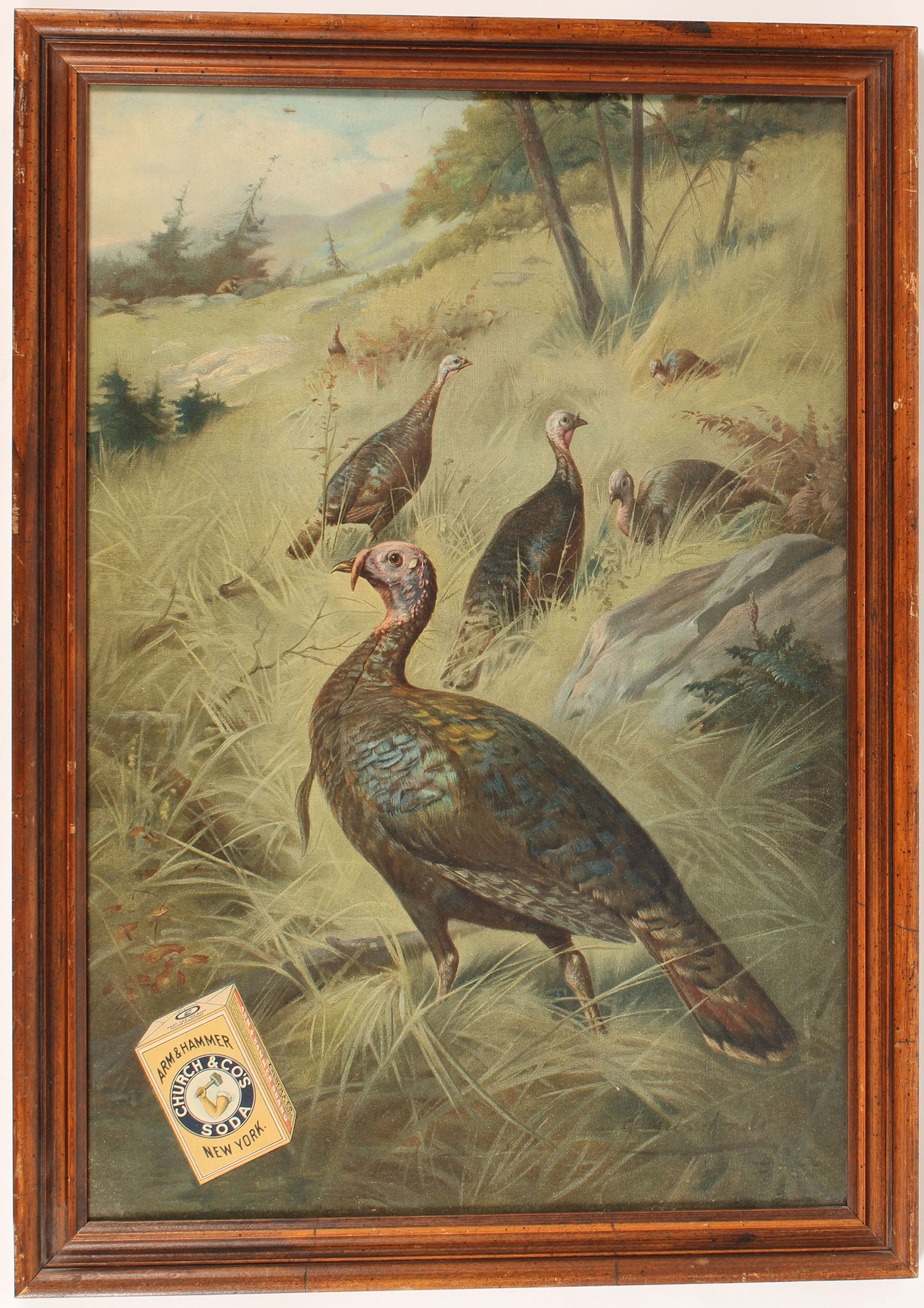 Armer Hammer Soda Poster, pictures wild turkey in a field, by G. Muss Arnolt, no bands, 16 3/4'' x 24 1/4''. Grade: Excellent - Value: 50 to 250
