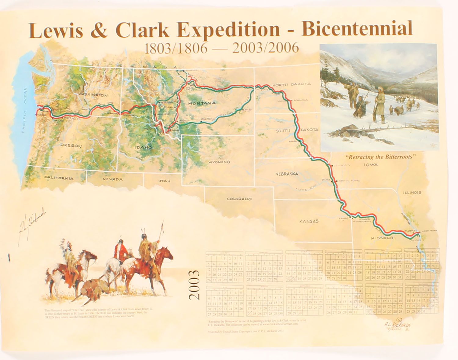 Lewis & Clark Expedition poster, shows the routes both ways. Grade: Excellent - Value: 10 to 50