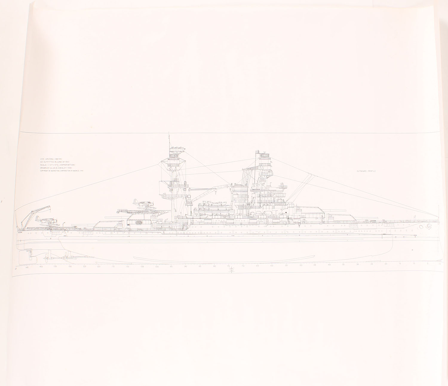 US Arizona drawing as it was in June of 1941, 41'' x 34''. Grade: Excellent - Value: 20 to 100