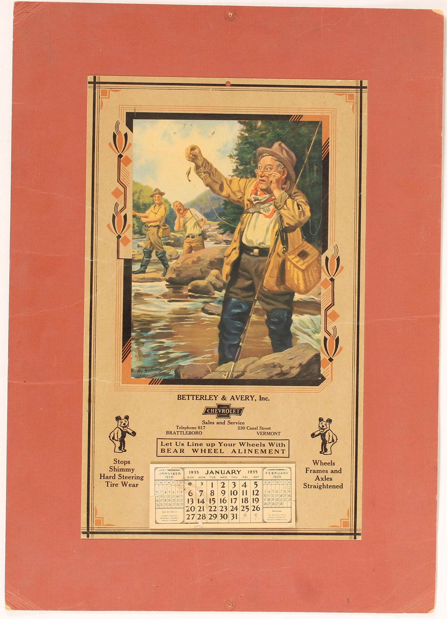1935 Hy Hintermeister calendar, 10'' x 17'', matted. Grade: Very Good ++ - Value: 10 to 50