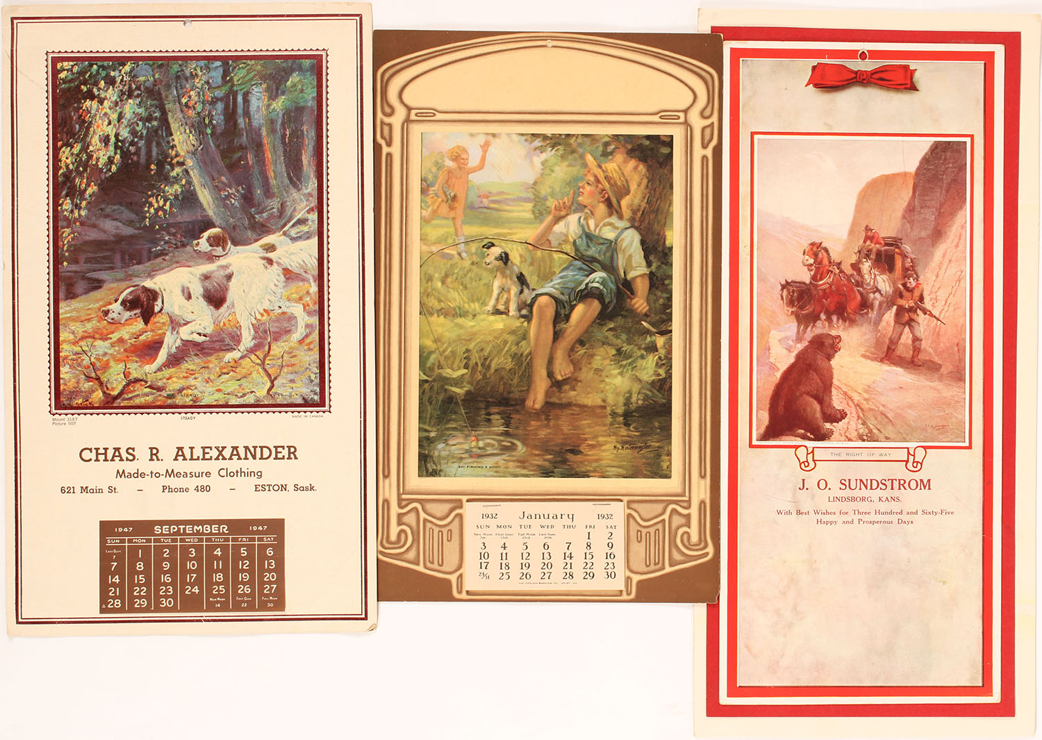 Lot of small calendars with images of hunting or fishing scenes. Grade: Excellent - Value: 10 to 80