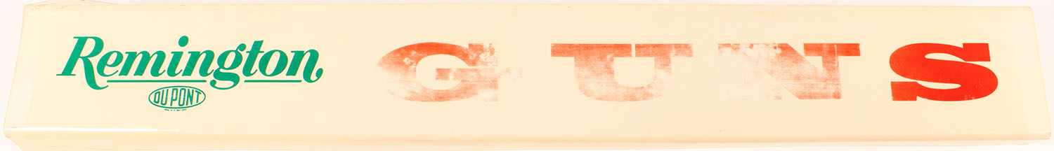 REMINGTON GUNS large light cover for Remington retail gun cabinet display, 48'' wide, shows some fading of the colored lettering. Grade: Very Good - Value: 50 to 250
