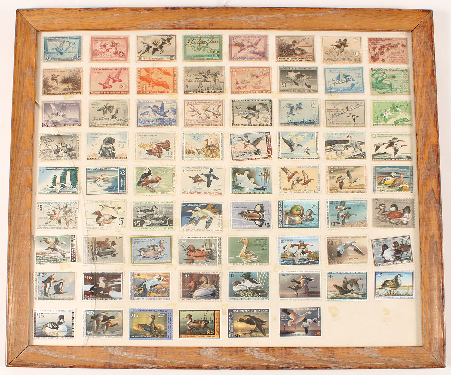 Set of Federal Duck Stamps from 1934 - 2003, 27 are signed & 42 are unsigned, framed, glass is missing a piece the left side. Grade: Very Good ++ - Value: 100 to 400