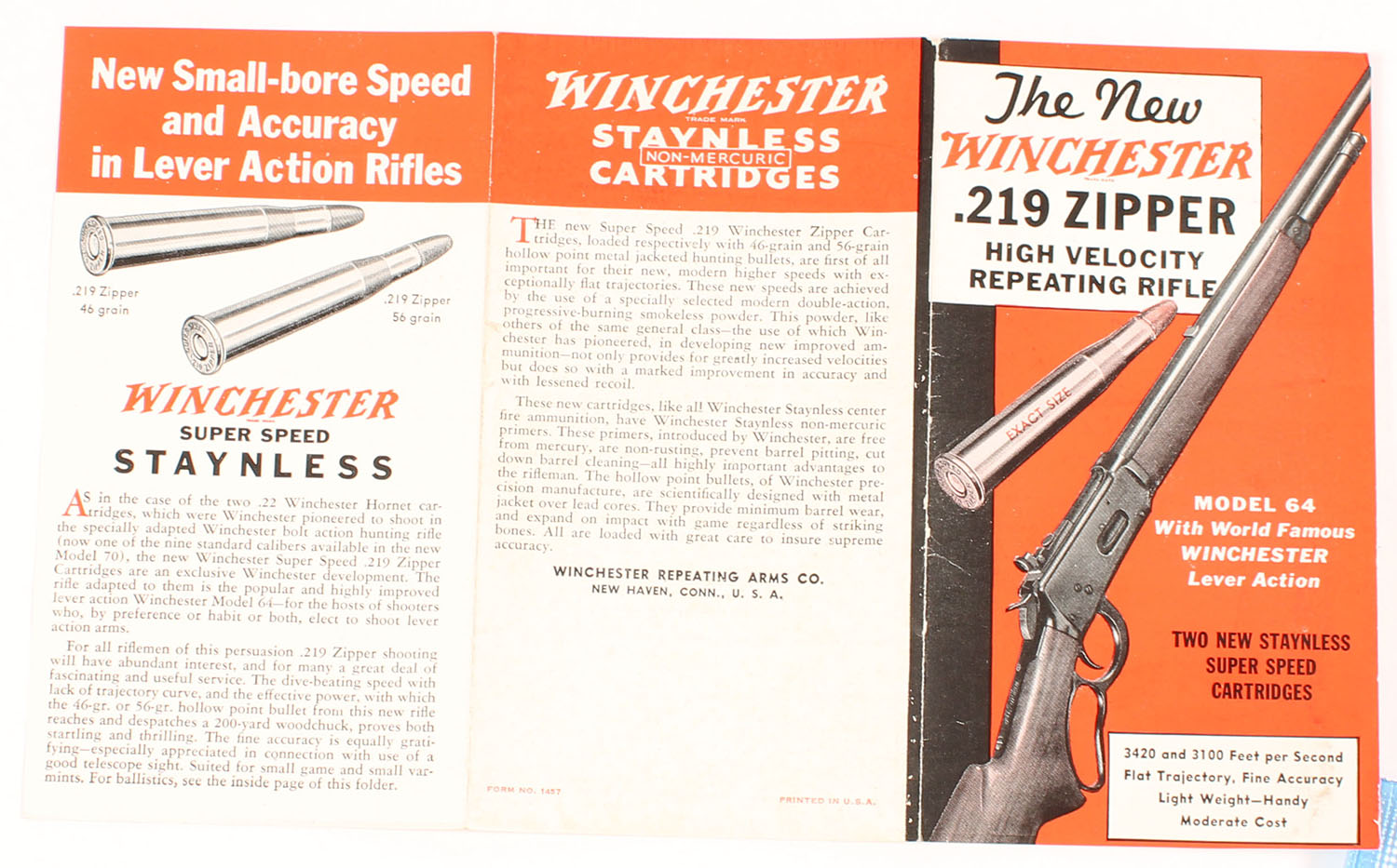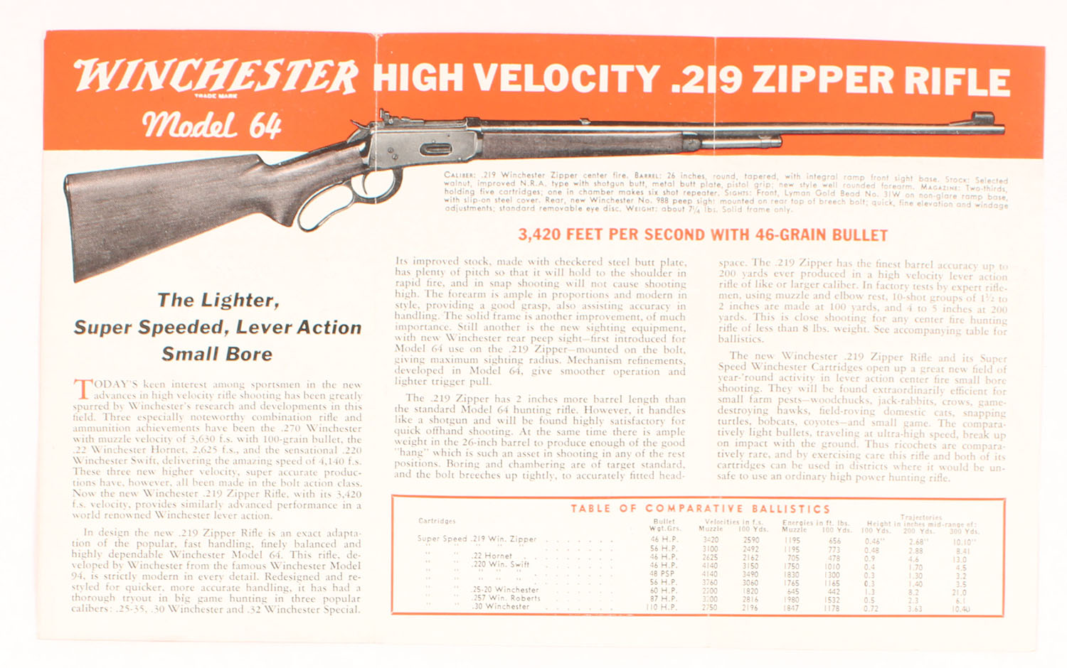 Winchester Model 219 Zipper brochure. Grade: Excellent - Value: 10 to 40