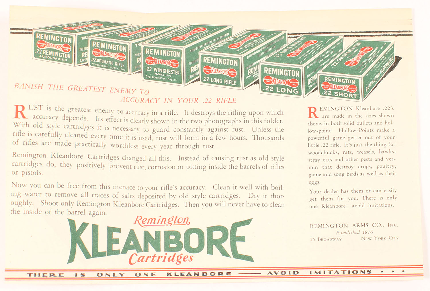 Remington .22 Caliber Kleanbore Cart brochure. Grade: Excellent - Value: 10 to 40