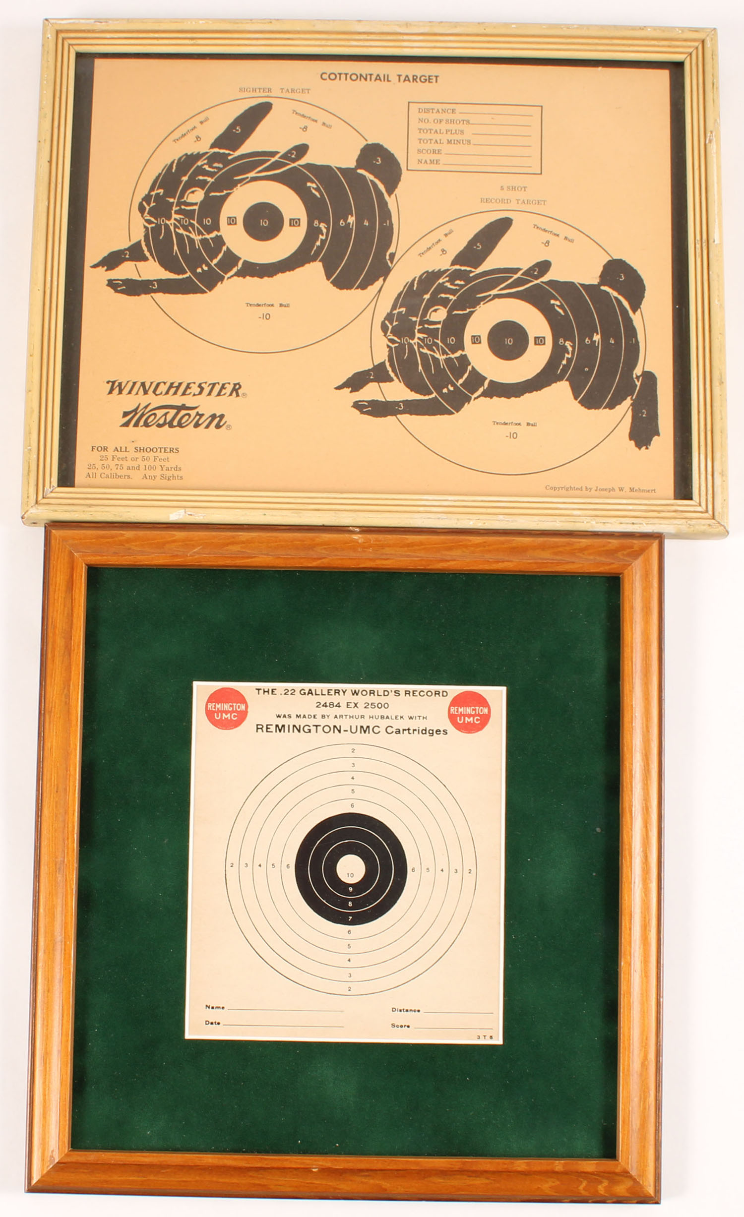 Lot of 2 targets are framed, Remington & Winchester. Grade: Excellent - Value: 6 to 30