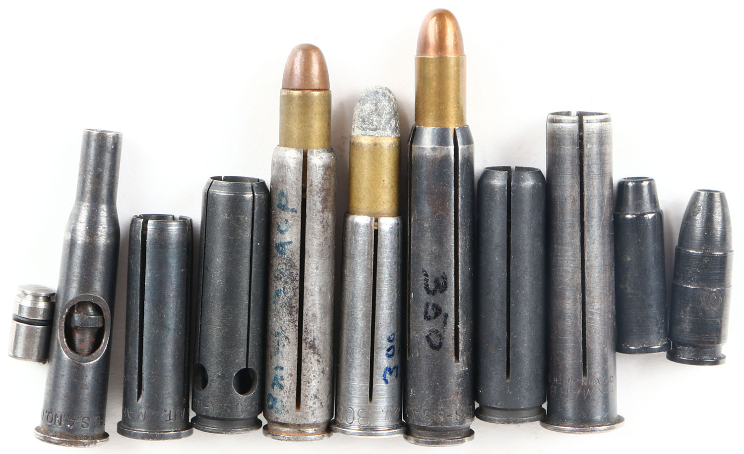 Lot of (7) Marbles Auxiliary Cartridges & (2) dummy cartridges, AUXILIARY CARTS: (1) No. 169 (8mm - .32 Colt Auto.), (1) No. 159 (.30-03/.30-06 - .32 Colt Auto.), (1) No. 169 (8mm - .32 Colt Auto.), (2) No. 172 (.300 Savage - .32 Auto.), (1) No. 154 (.303 Savage - .32 Colt Auto), (1) No. 161 (.22 Savage HP - .22 Long Rilfe), (1) No. 153 (.303 Savage - .32 Smith & Wesson) - Value: 10 to 30