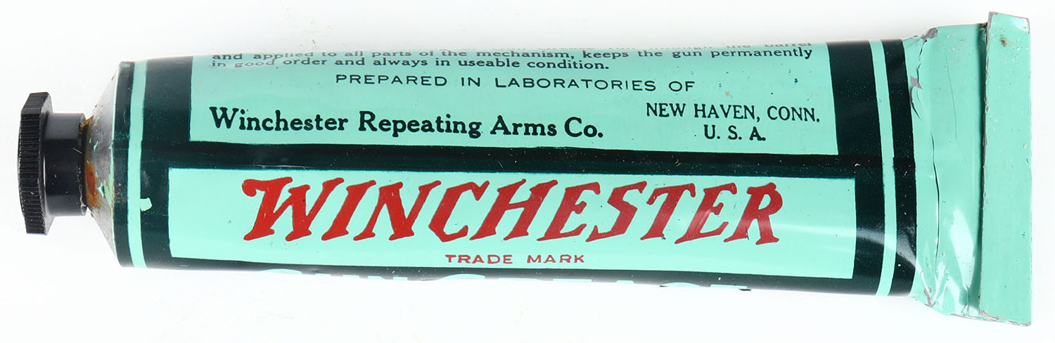 Winchester Gun Grease tube, appears unused, in orignal box, all bright and clean. Grade: Excellent ++ - Value: 30 to 90
