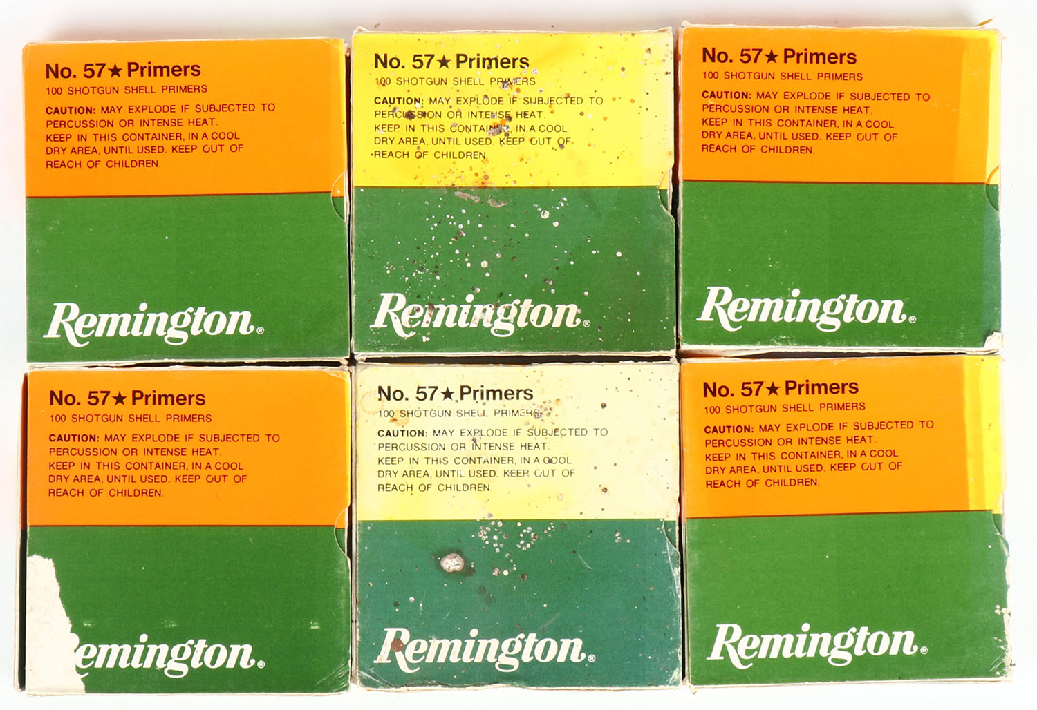 Lot of 6 Remington No 57 Shotgun shell primers, FULL. Grade: Excellent ++ - Value: 16 to 50