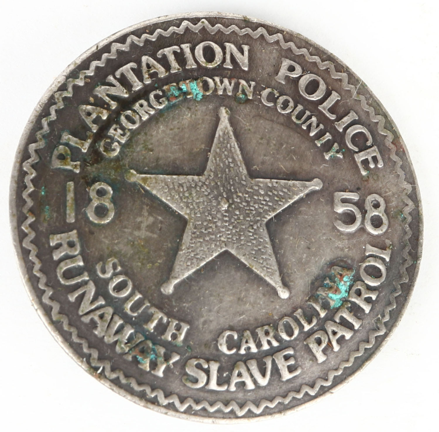 RARE! Plantation Police Badge dated 1858. Grade: Very Good ++ - Value: 100 to 400