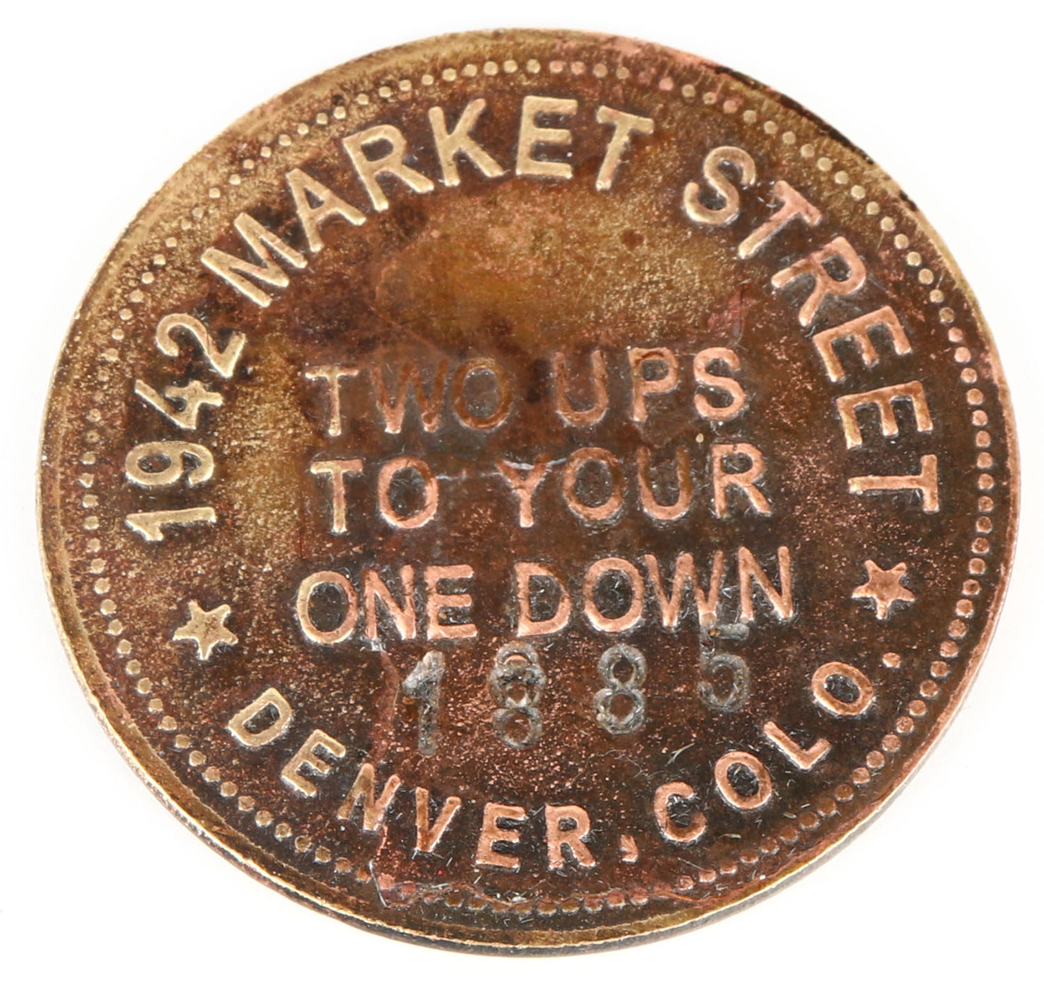 Brothel Token Denver , Colo dated 1885. Grade: Very Good ++ - Value: 10 to 50