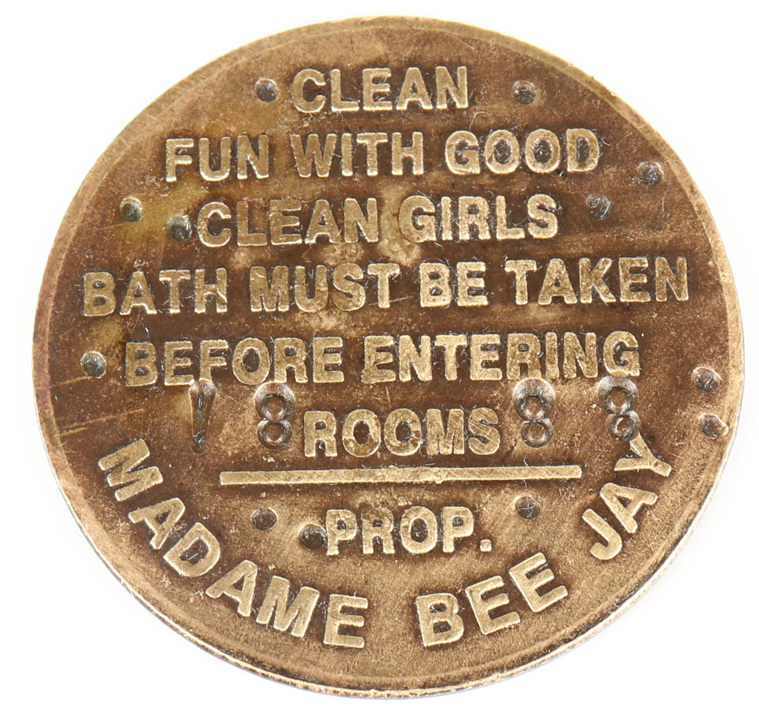 Brothel Token Vriginia City, dated 1888. Grade: Very Good ++ - Value: 10 to 50