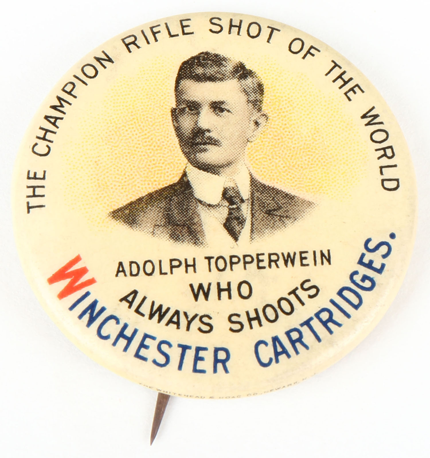 RARE! Winchester Adolph Topperwein pinback, whitehead & Hoag paperback. Grade: Excellent - Value: 100 to 200
