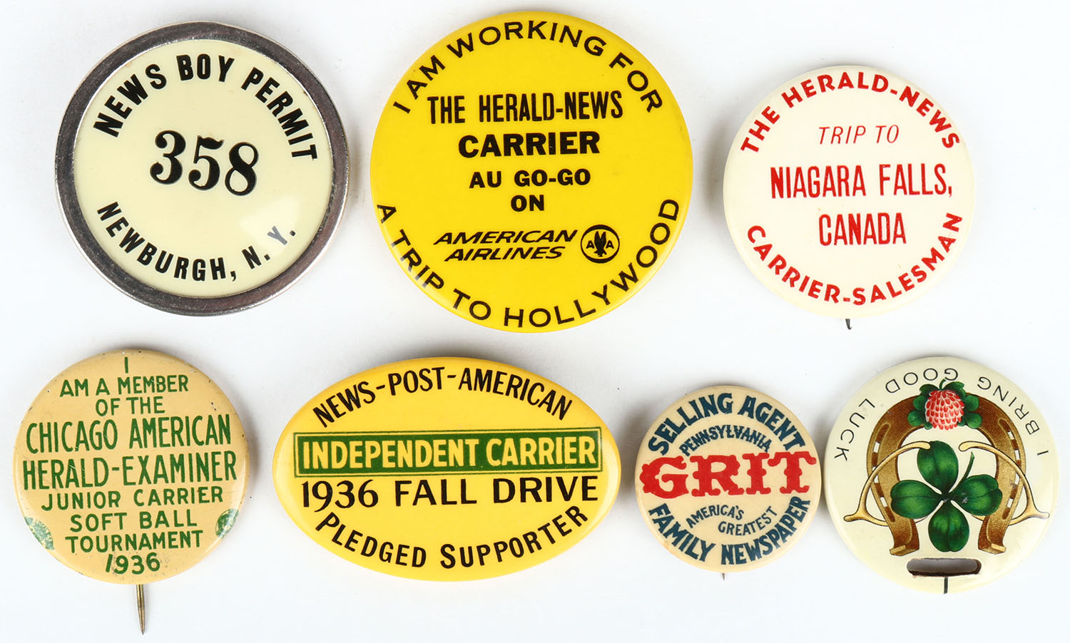 Lot of various pinbacks. Grade: Excellent - Value: 10 to 50