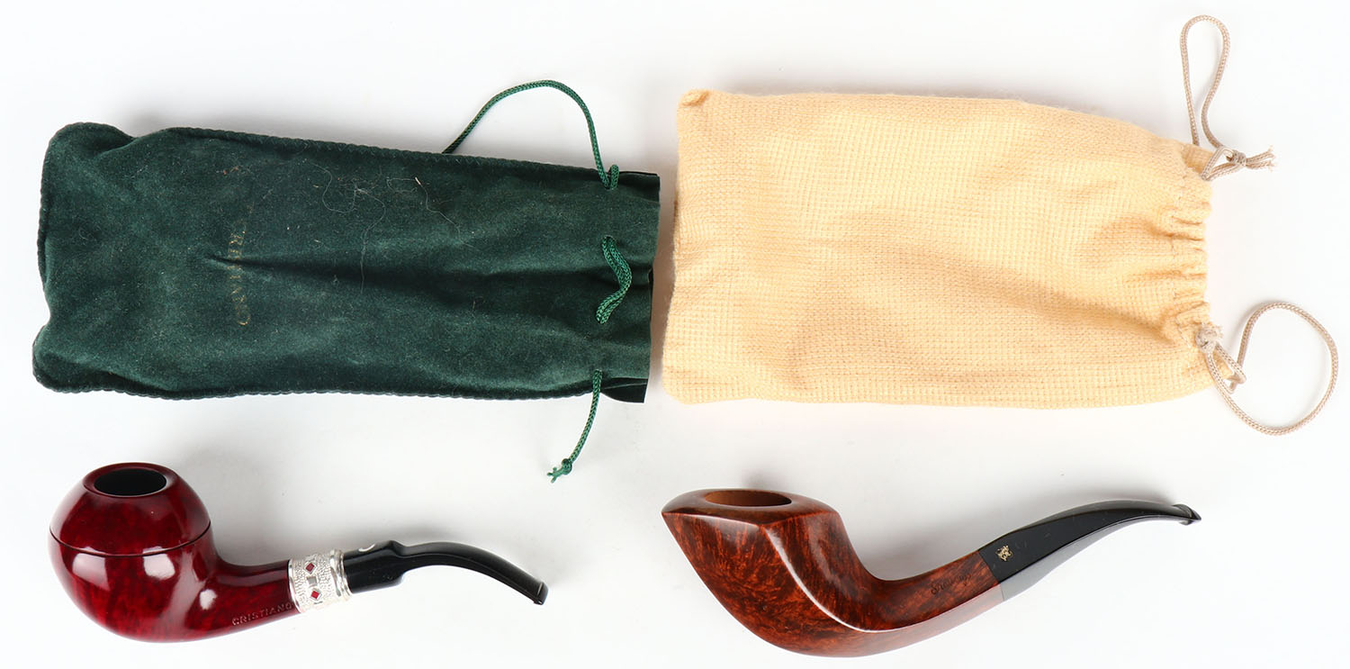 Lot of 2 Tobacco Pipes in soft case. Grade: Excellent ++ - Value: 30 to 90