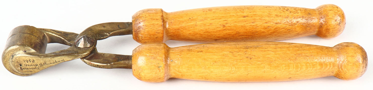 RARE! Mark B Burnharm bullet moulds, made in Savannah, Georgia ca 1950-1968, this tool dated 1952 and 42 cal., blonde wood handles. Grade: Excellent - Value: 50 to 200