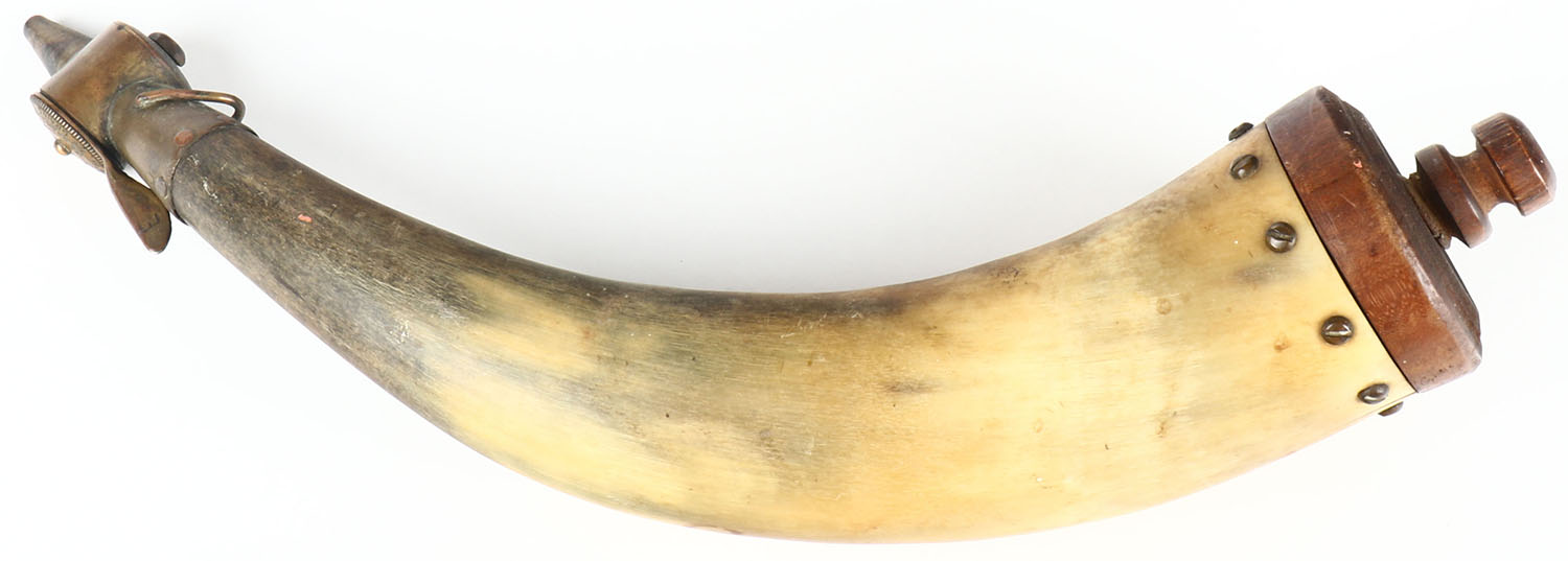 Mark B Burnham powder horn, dated 1957 #537. Grade: Excellent - Value: 50 to 200