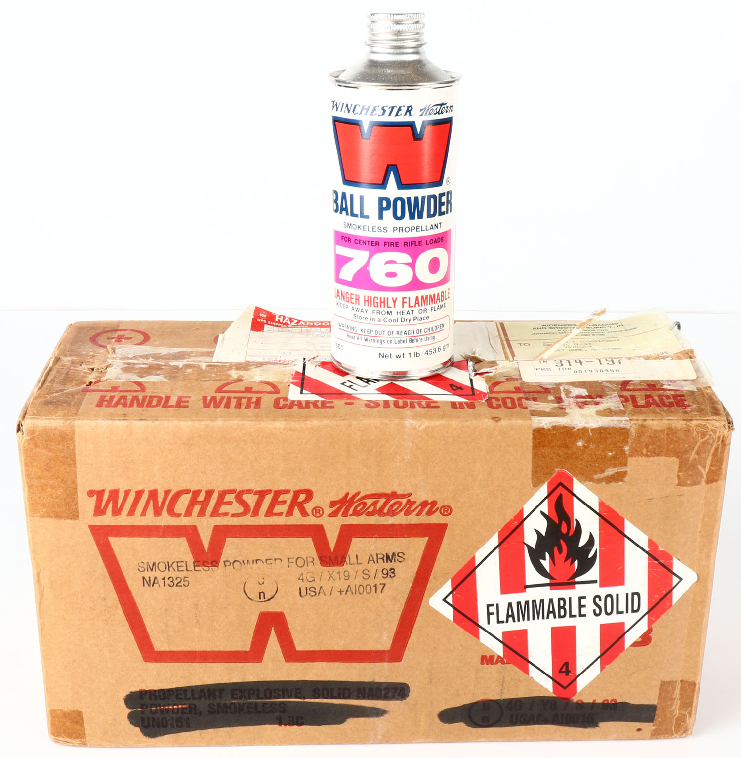 Case of Winchester-Western, 7601 Ball Powder, Smokeless Propellant for Center Fire Rifle Loads, FULL Case (10 bottles), bottles are FULL & SEALED. Grade: Excellent ++ - Value: 150 to 300