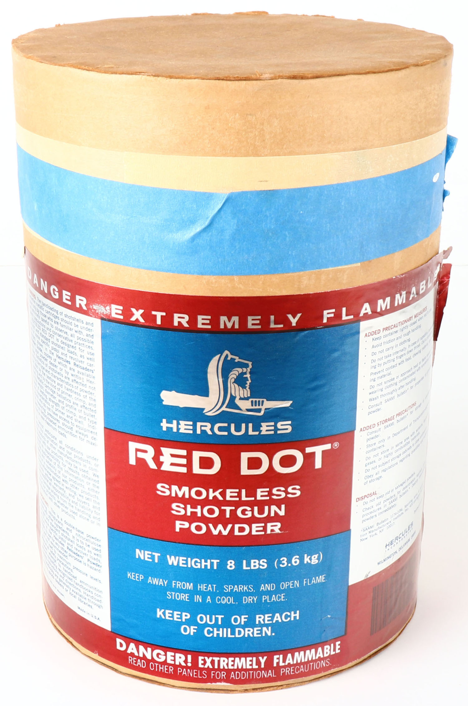 Very large Hercules Red Dot smokless shotgun powder tin, Nearly Full. Grade: Excellent - Value: 30 to 90